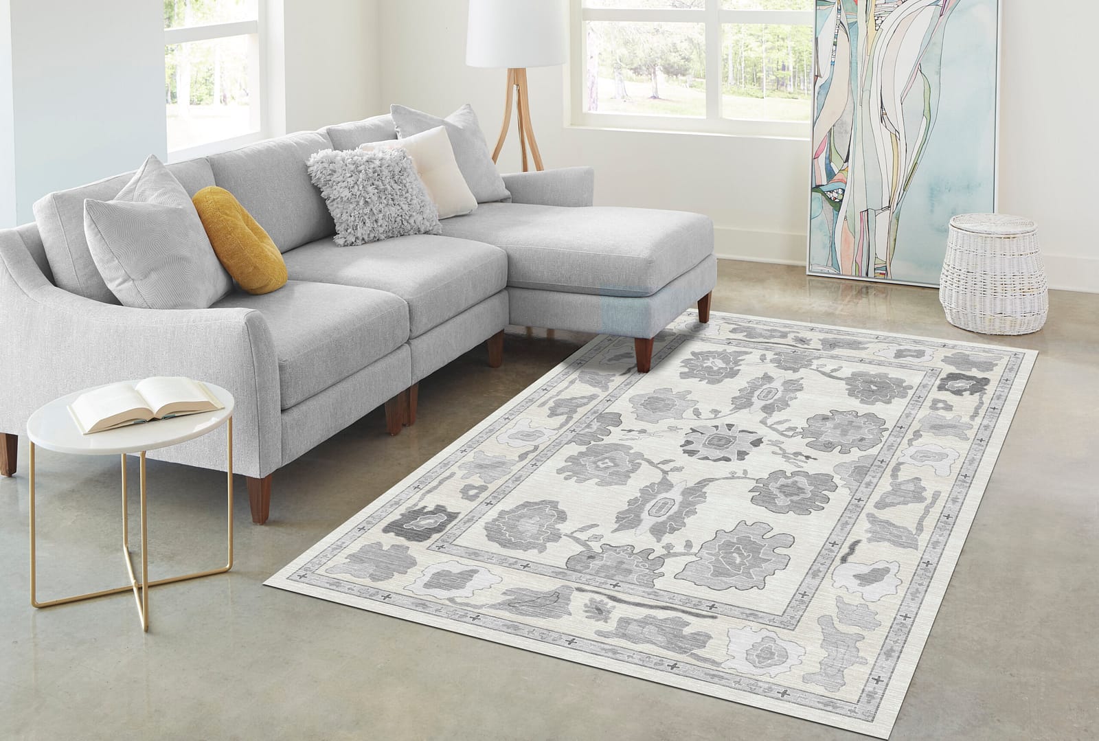 Be the first to review “Grey Grey Oushak Rug, Neutral Antique Luxury Floral Rug”
