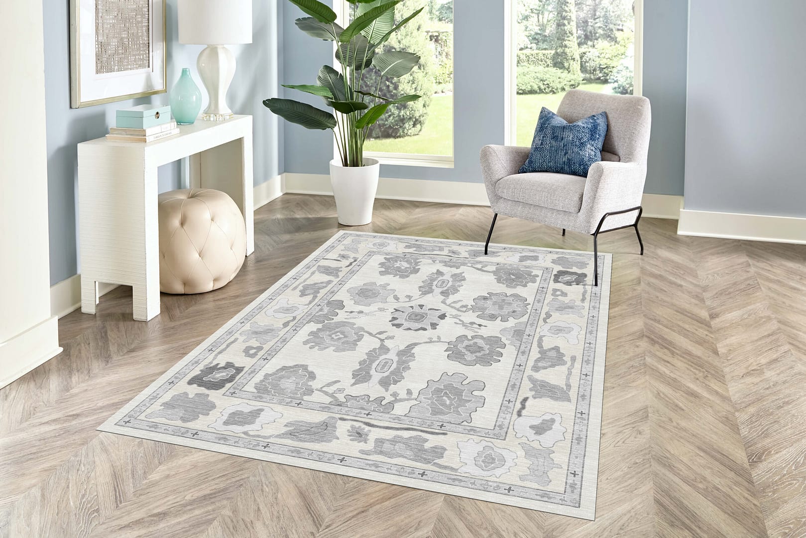 Grey Grey Oushak Rug, Neutral Antique Luxury Floral Rug