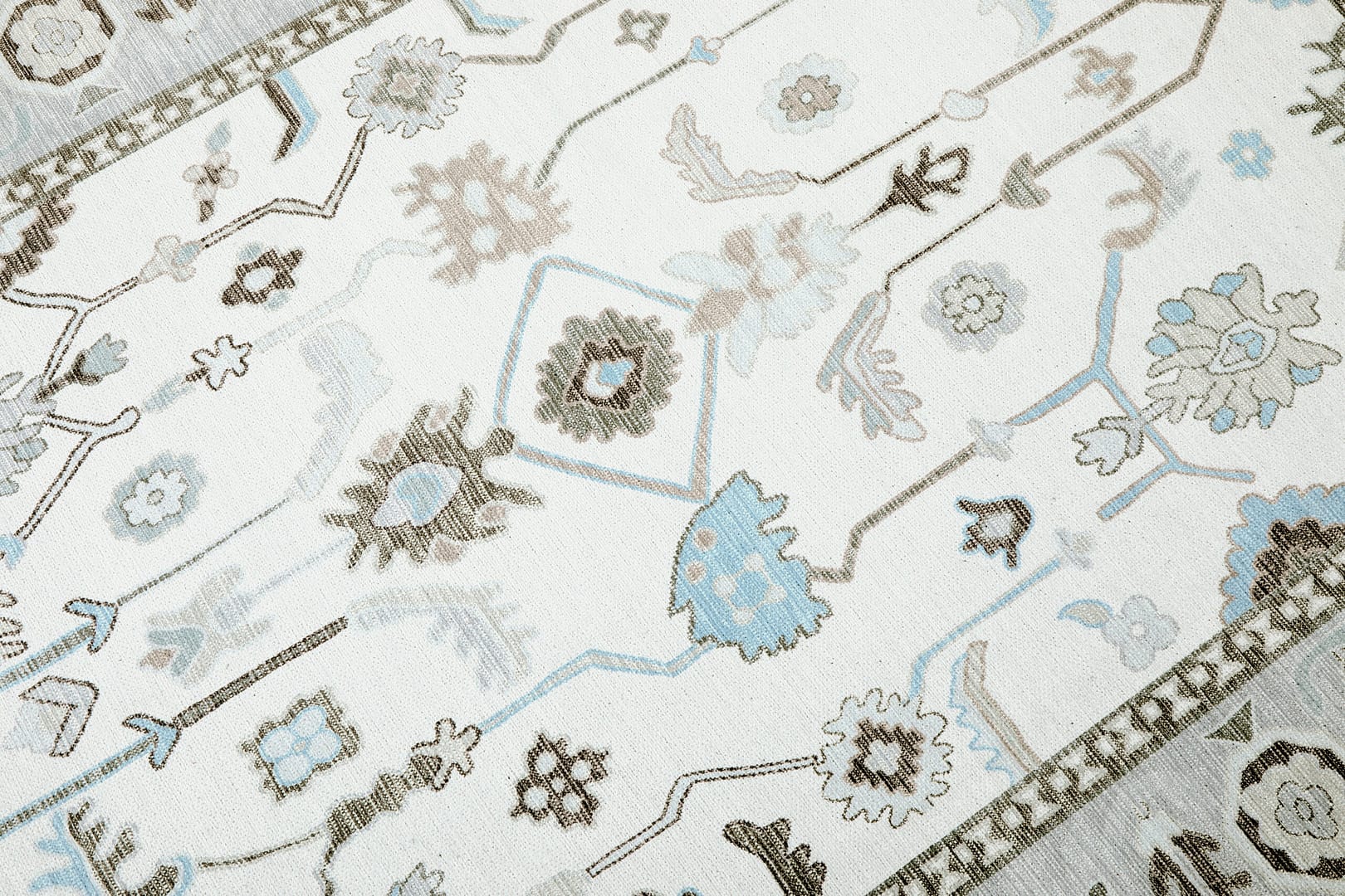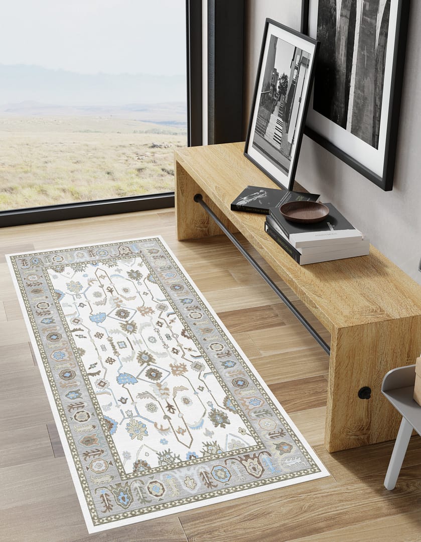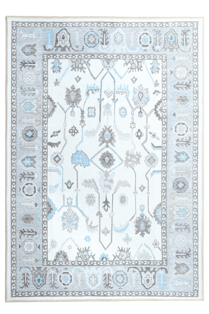 Oushak Cream-Blue Machine Carpet