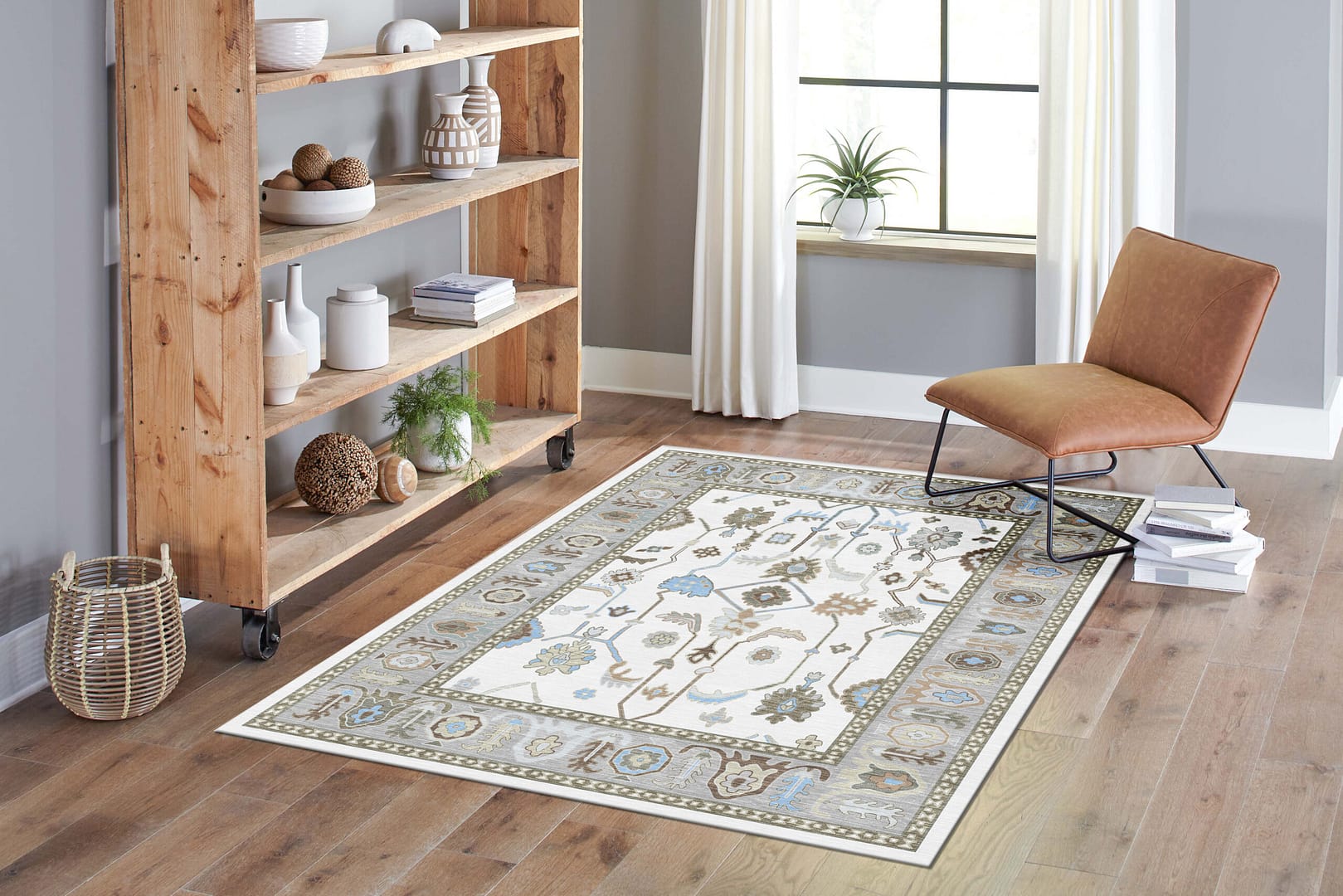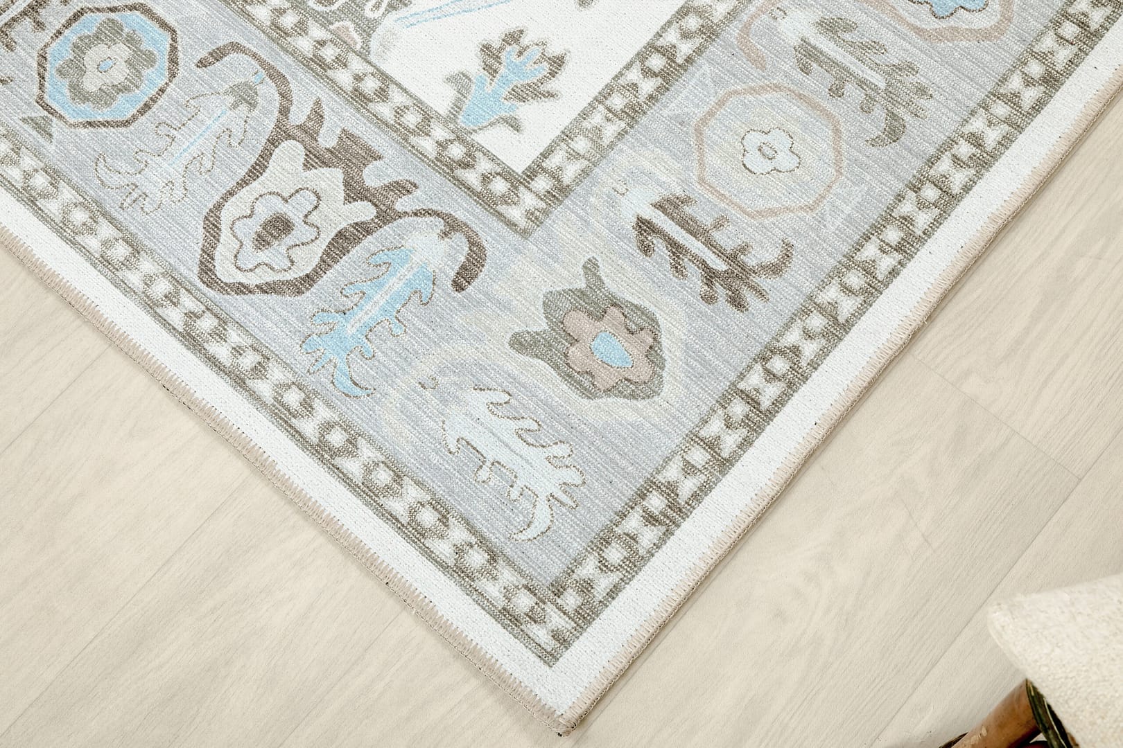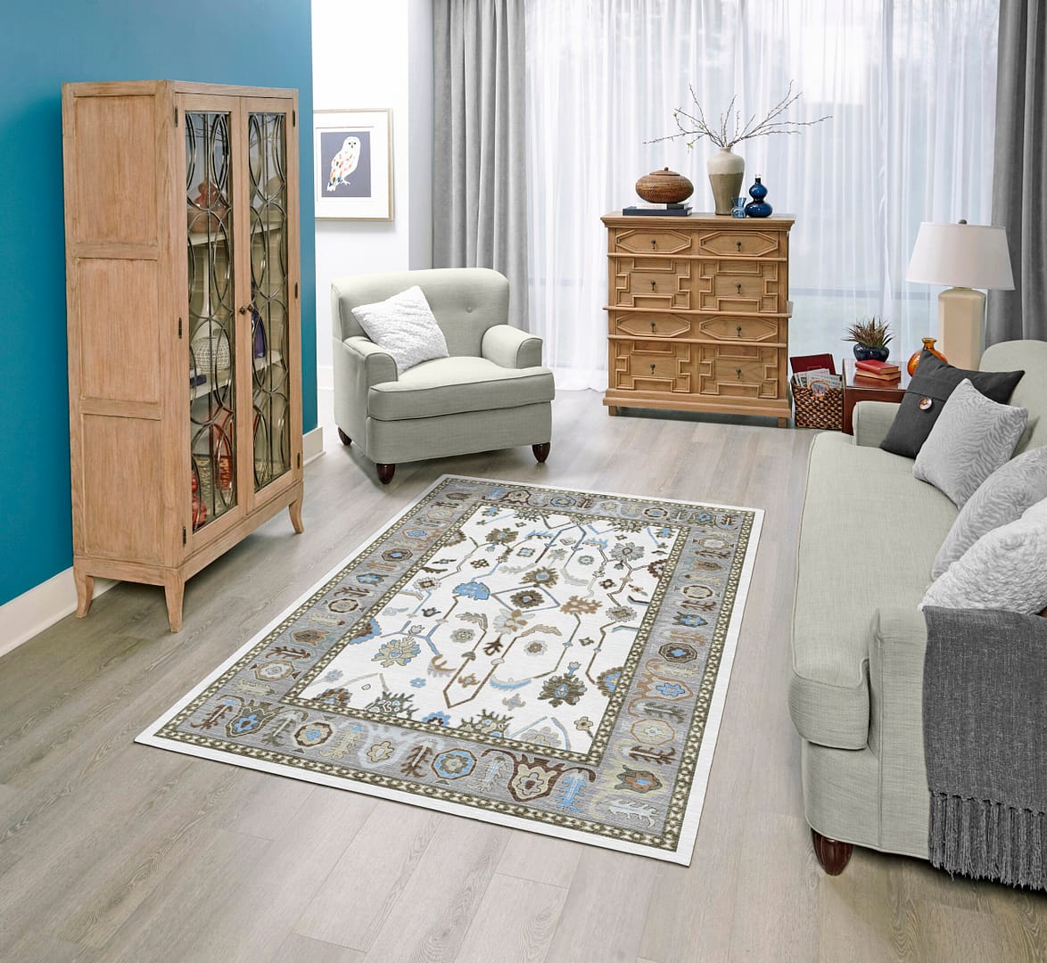 Oushak Cream-Blue Machine Carpet