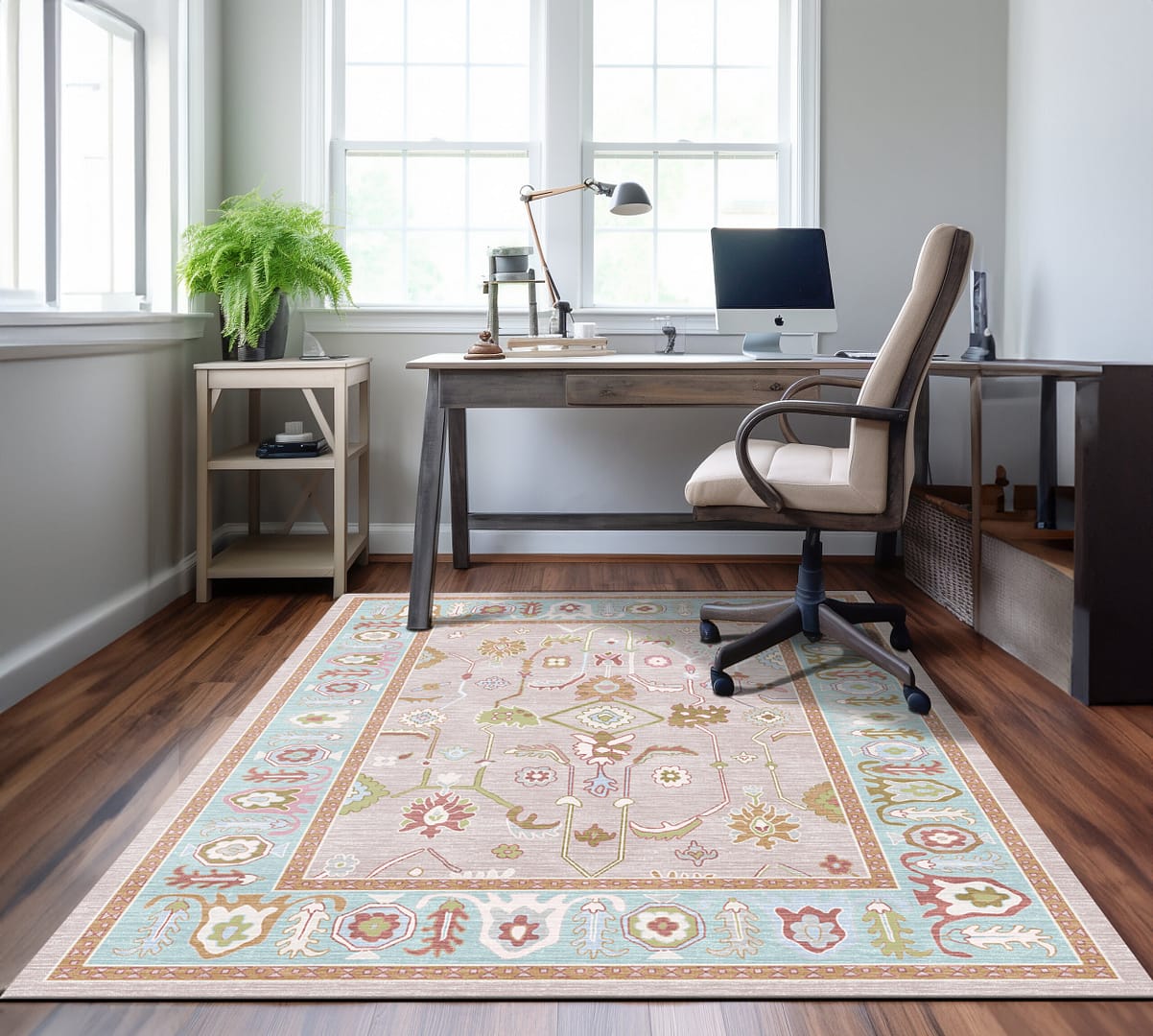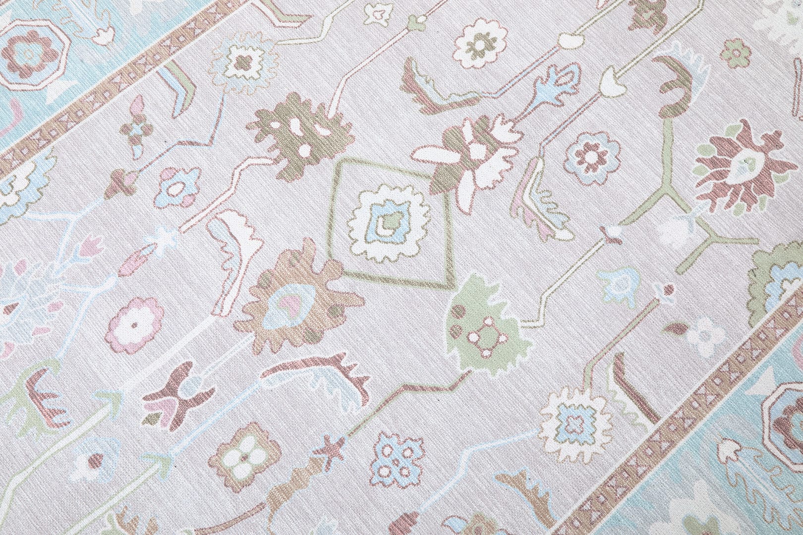 ✈️ FREE SHIPPING, Muted Oushak Rug, Faded Floral Pastel Area Rugs for Living room