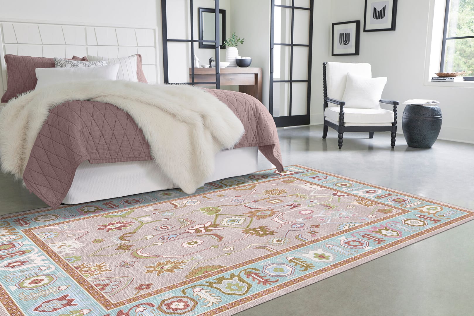 Pink Multi Oushak Rug, Pastel Colorful Area Rugs