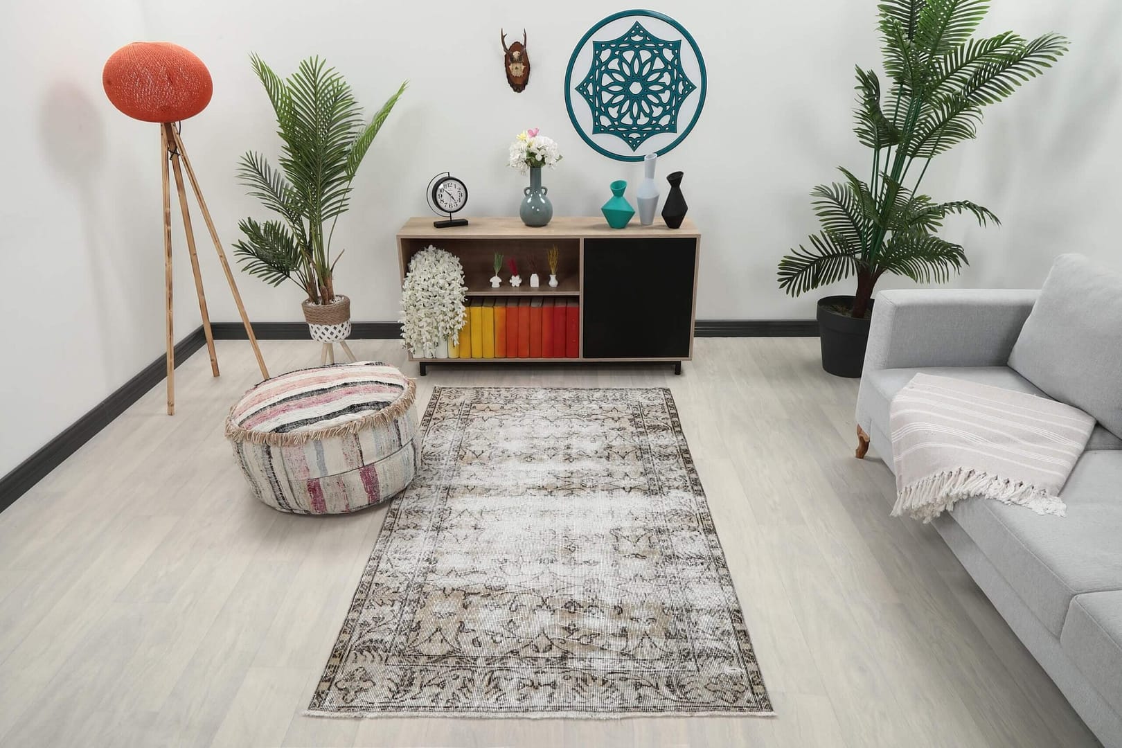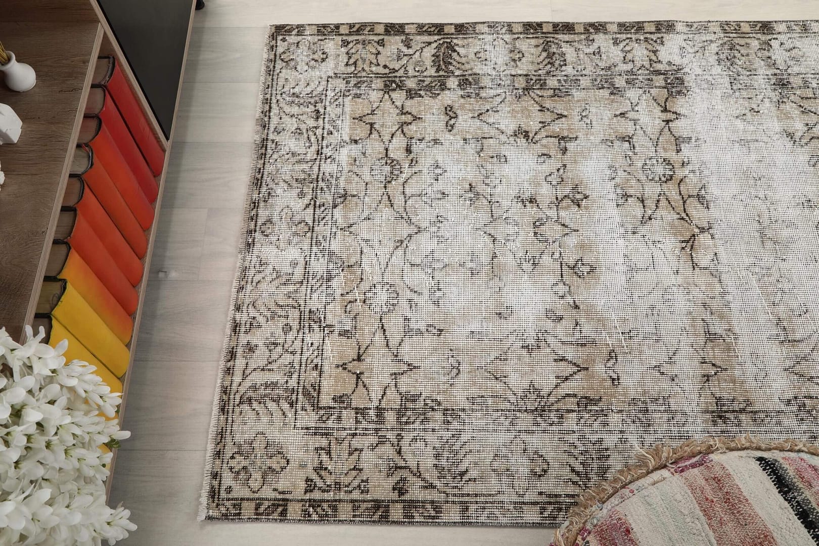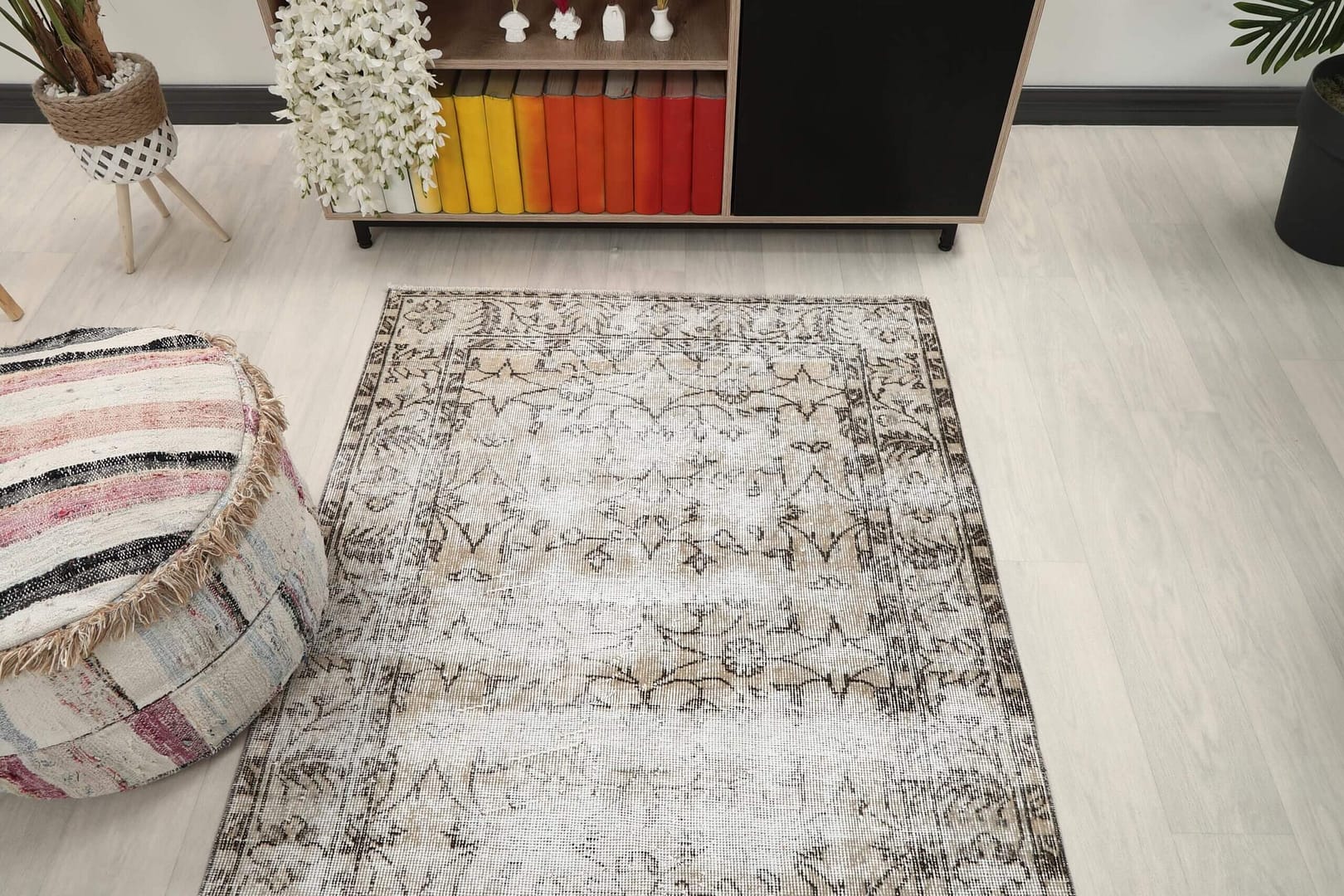 4×6 Beige Brown Turkish Rug, 4×6 Handwoven Rug, 4×6 Oushak Area Rug, Handmade Rug, Living Room Rug, Vintage Rug, Kitchen Wool Rug, Faded Rug