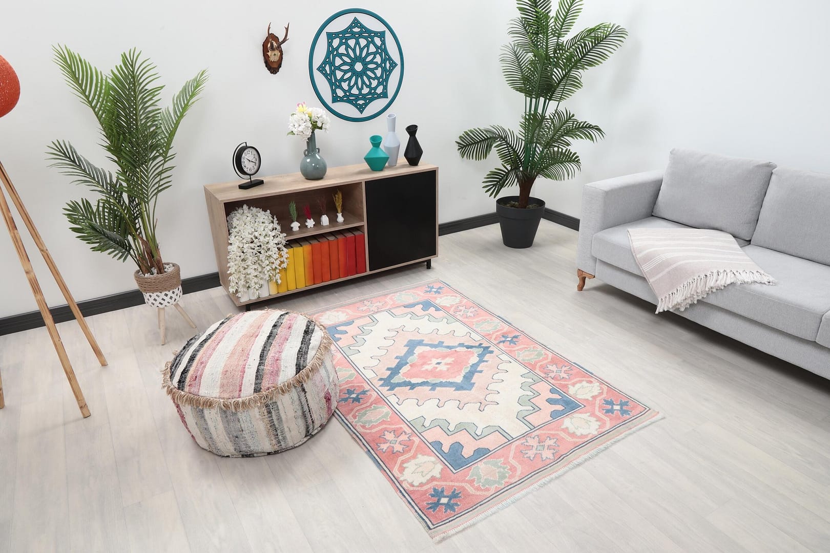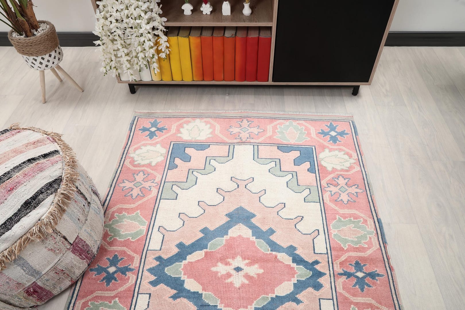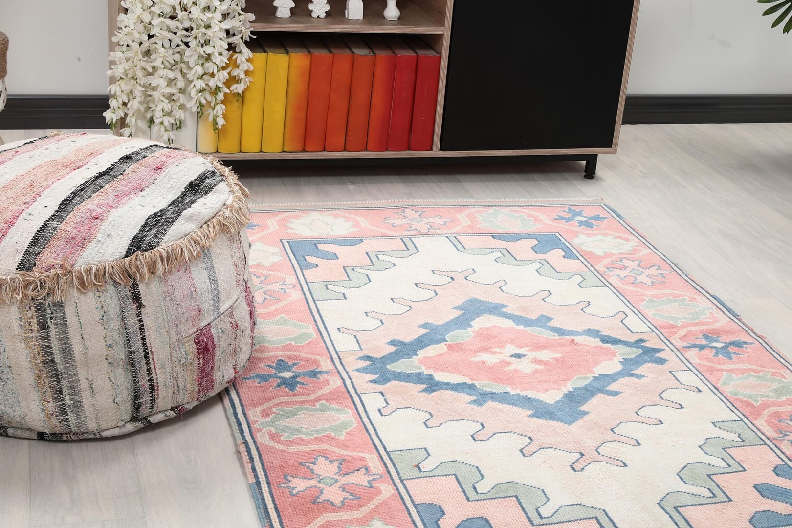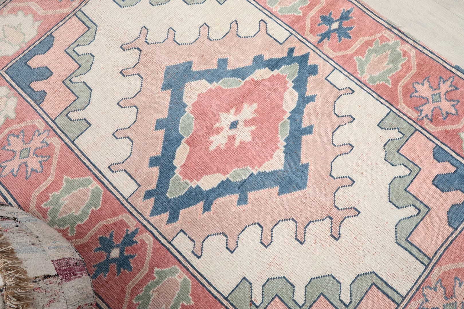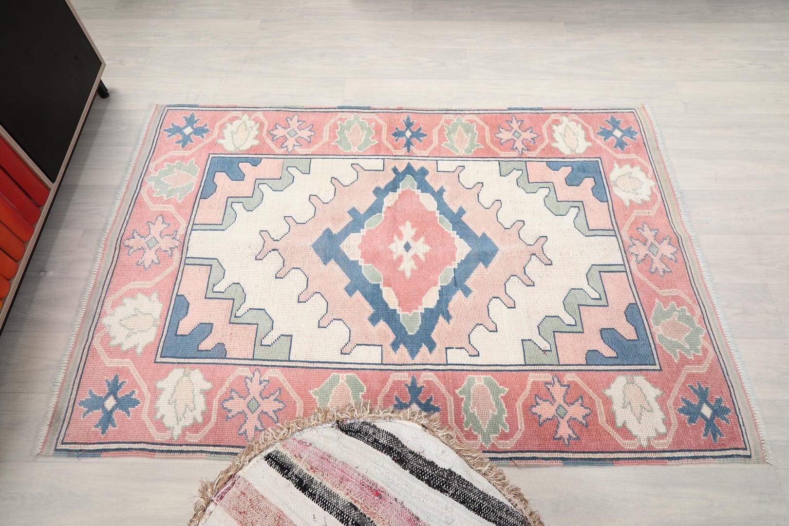 4×6 Pink Blue Turkish Rug, 4×6 Handwoven Wool Rug, 4×6 Oushak Rug, Handmade Rug, Living Room Rug, Vintage Rug, Kitchen Area Rug, Dining Rug