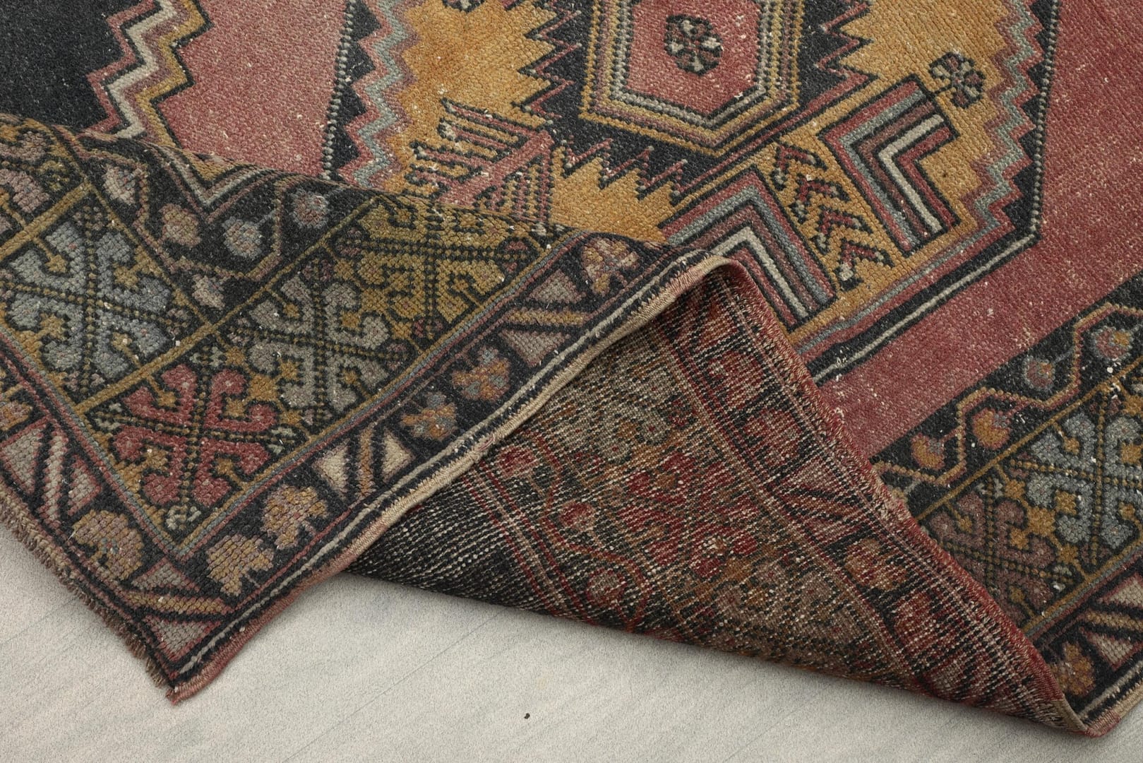 4×6 Red Black Yellow Turkish Rug, 4×6 Handwoven Wool Rug, Oushak Rug, Handmade Rug, Living Room Rug, VintageArea Rug,Kitchen Rug,Dining Rug