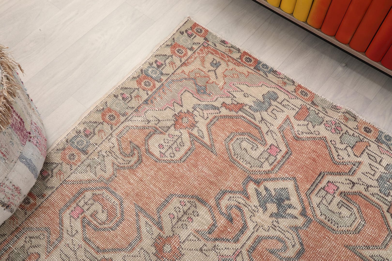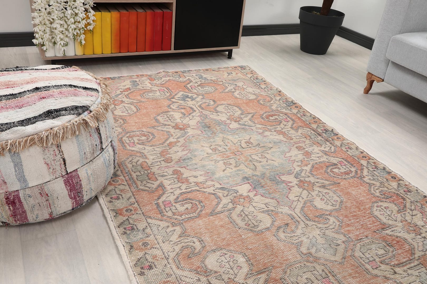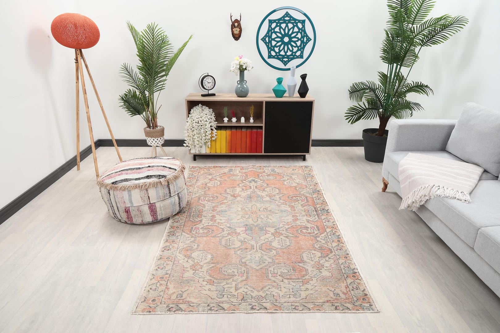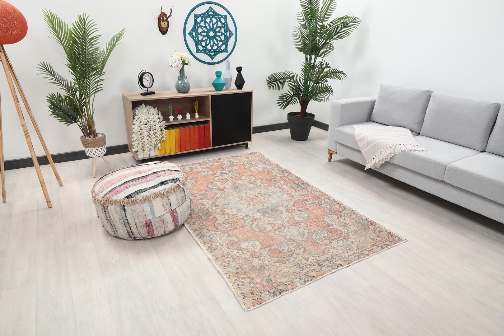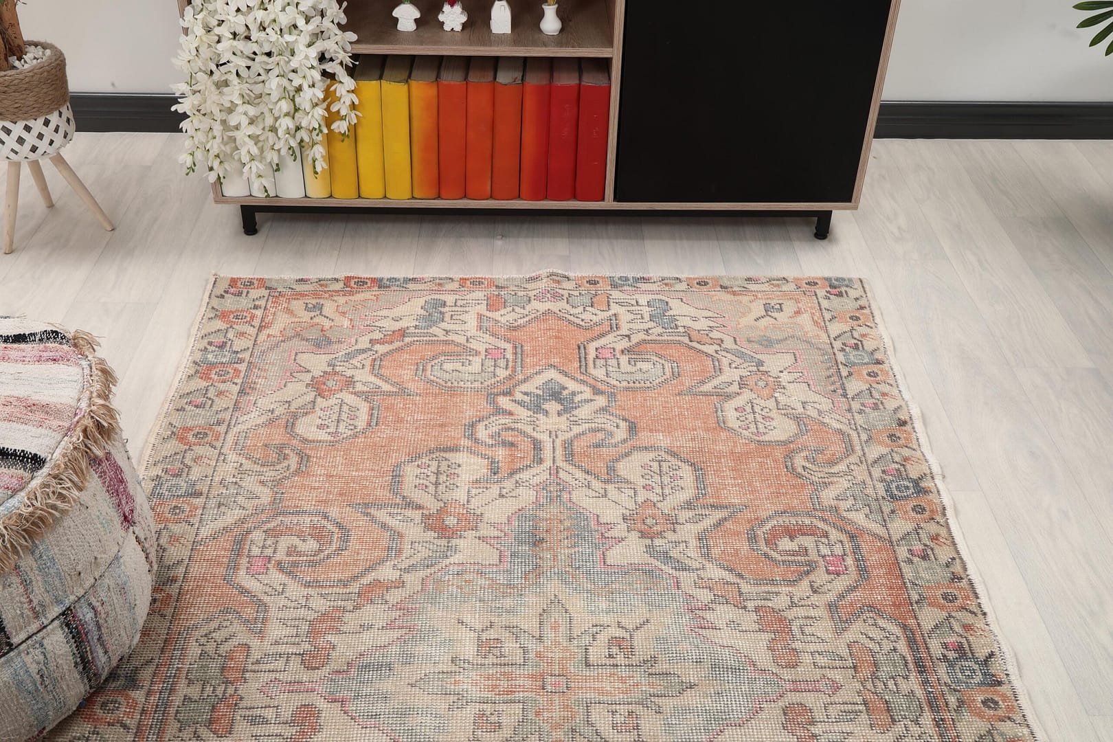 4×7 Orange Floral Oushak Rug, Bedroom Area Rug, 4×7 Handwoven Runner, Bohemian Rug, Vintage Wool Rug, Antique Rug, Floral Rug, Kitchen Rug