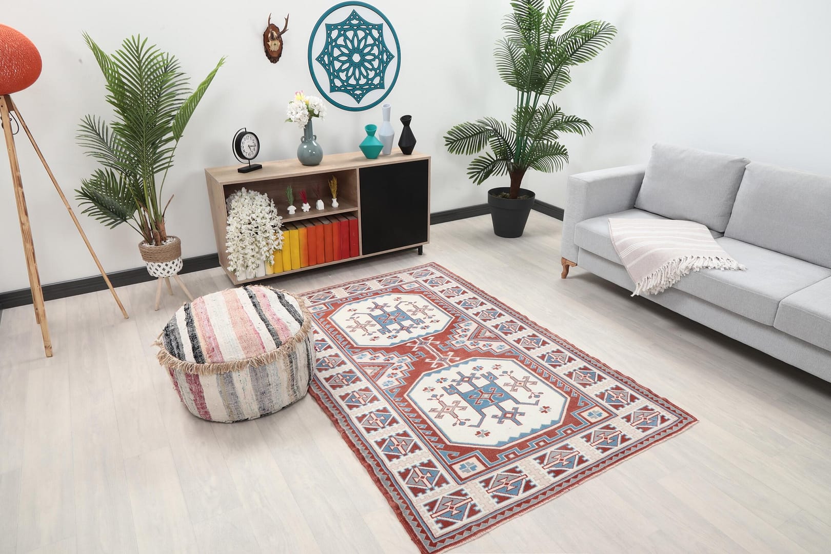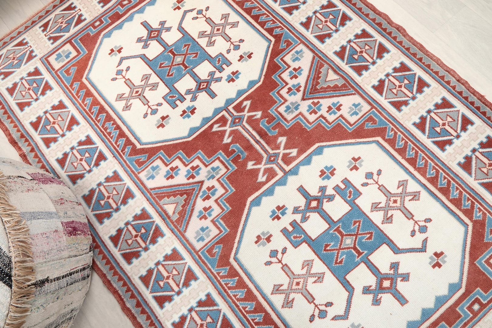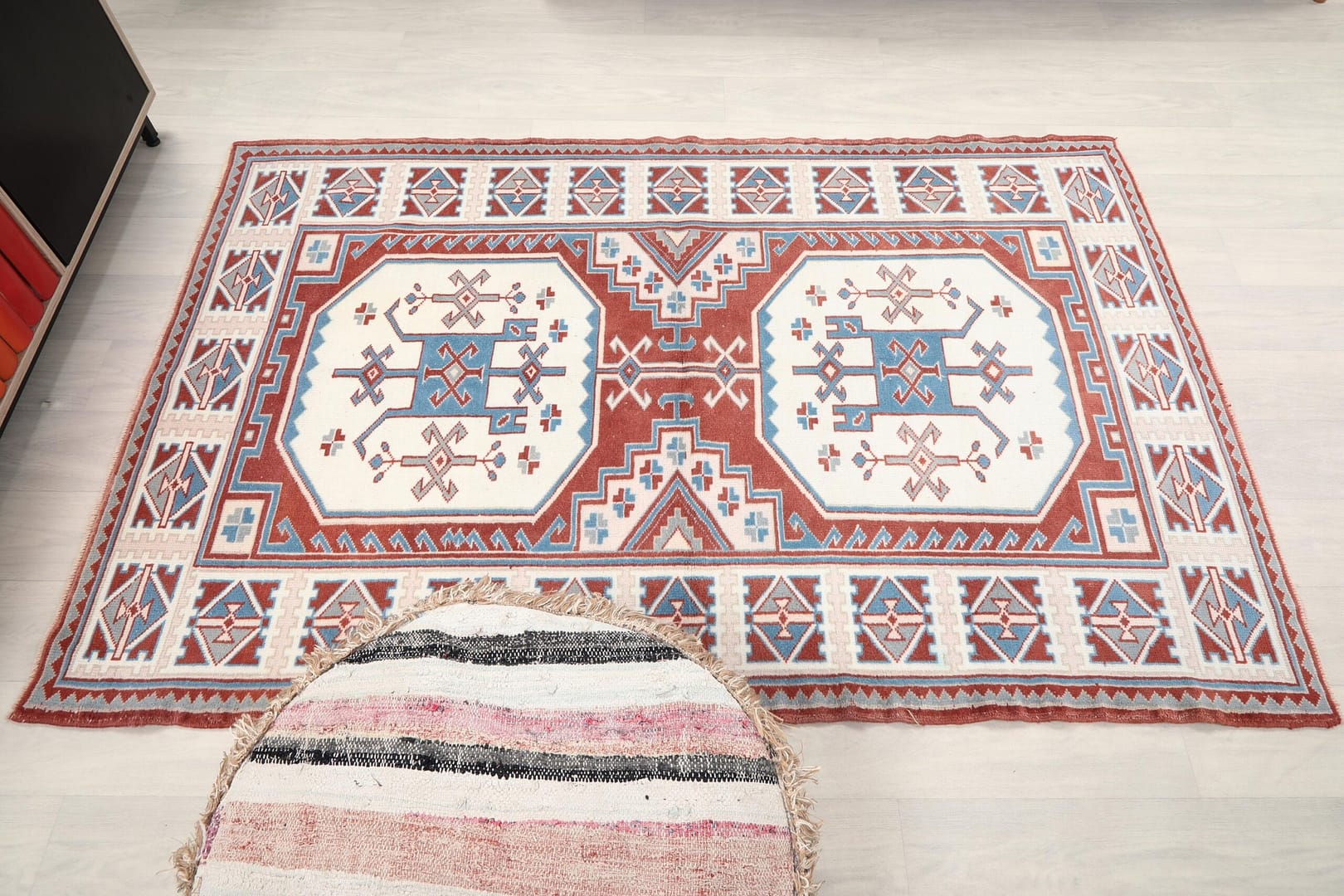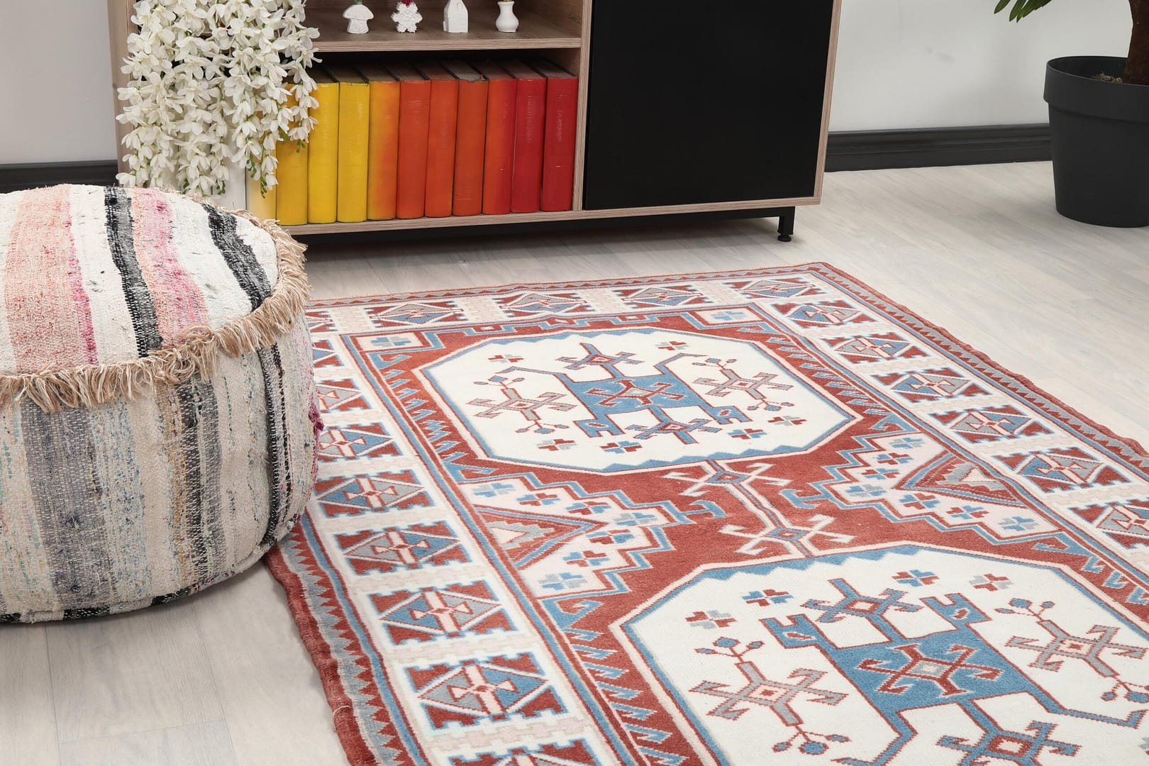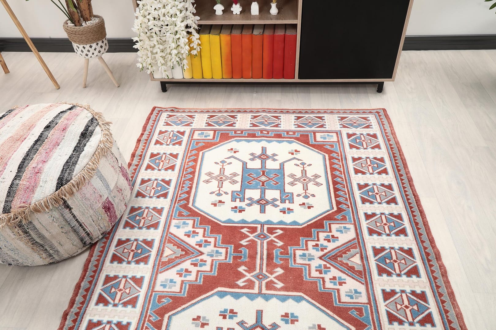 Be the first to review “4×7 White Red Blue Vintage Rug, Antique Area Rug, 4×7 Oushak Runner, Bohemian Rug, Handmade Wool Rug, Turkish Wool Rug, Kitchen Cotton Rug”