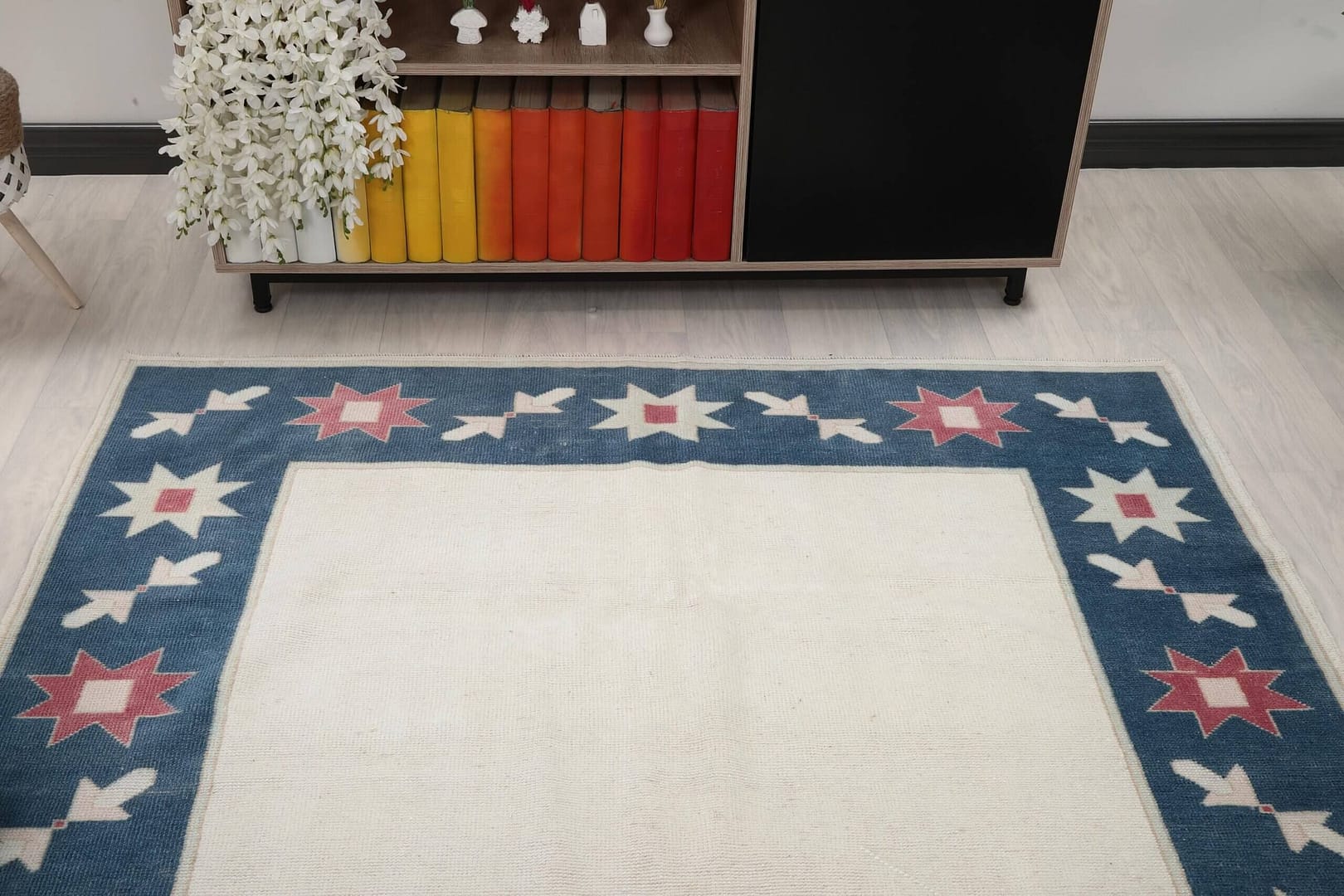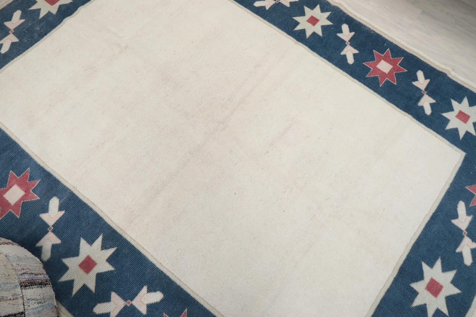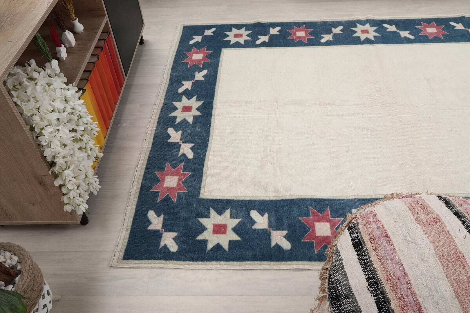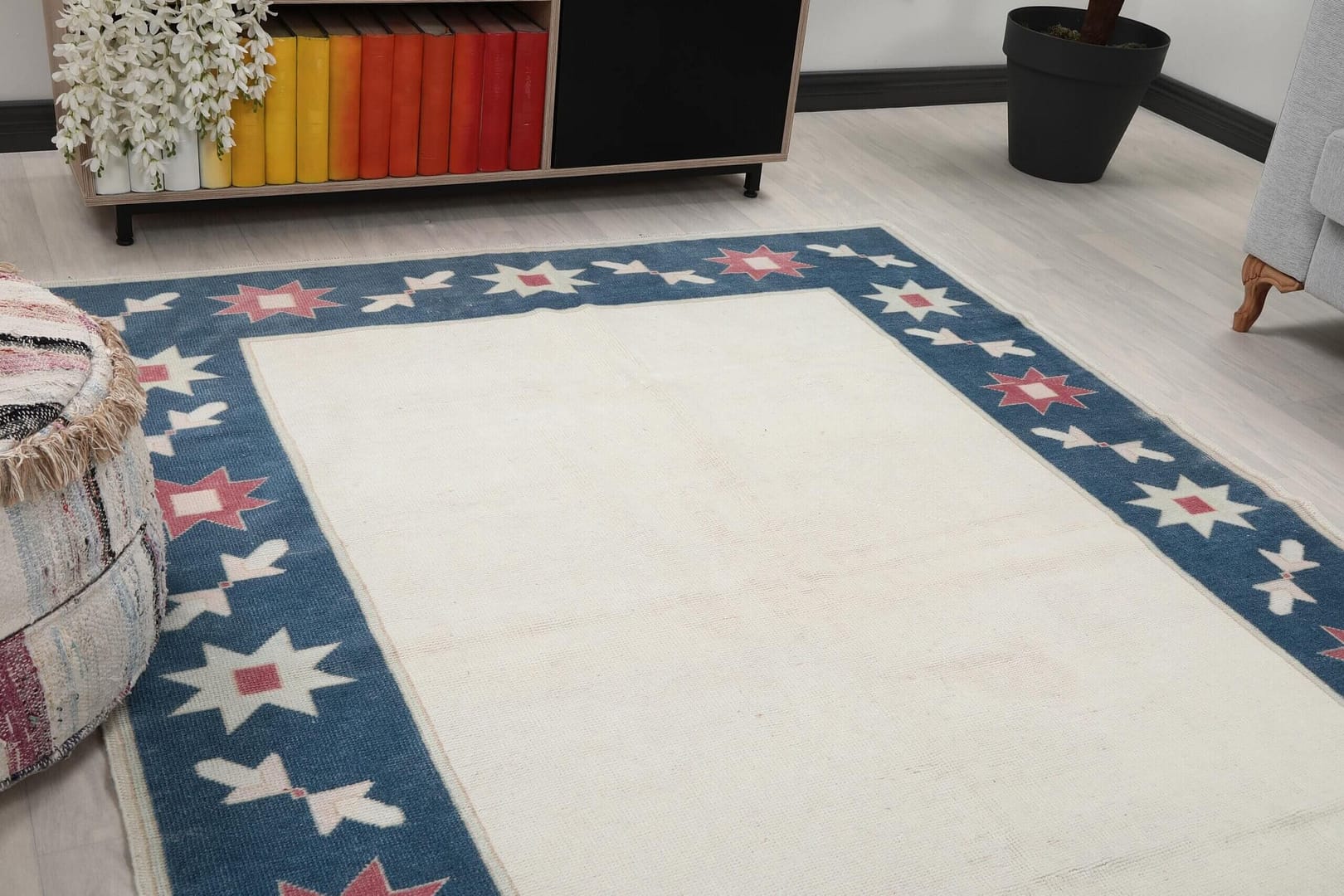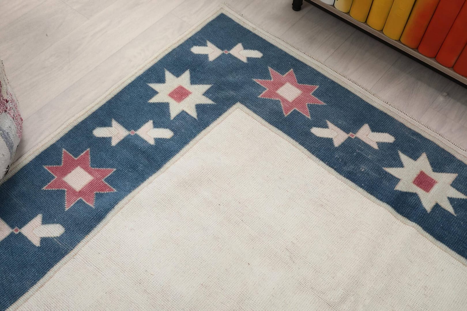 5×7 Beige Blue Red Turkish Rug, 5×7 Handmade Oushak Runner, Bohemian Rug, Handmade Wool Rug, Antique Wool Area Rug, Vintage Rug, Kitchen Rug