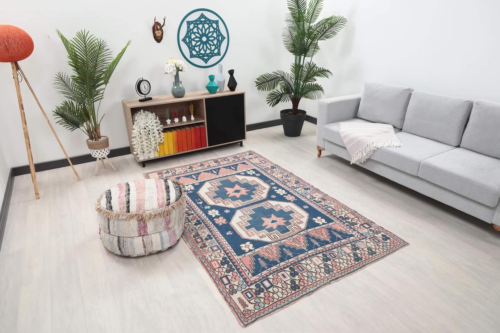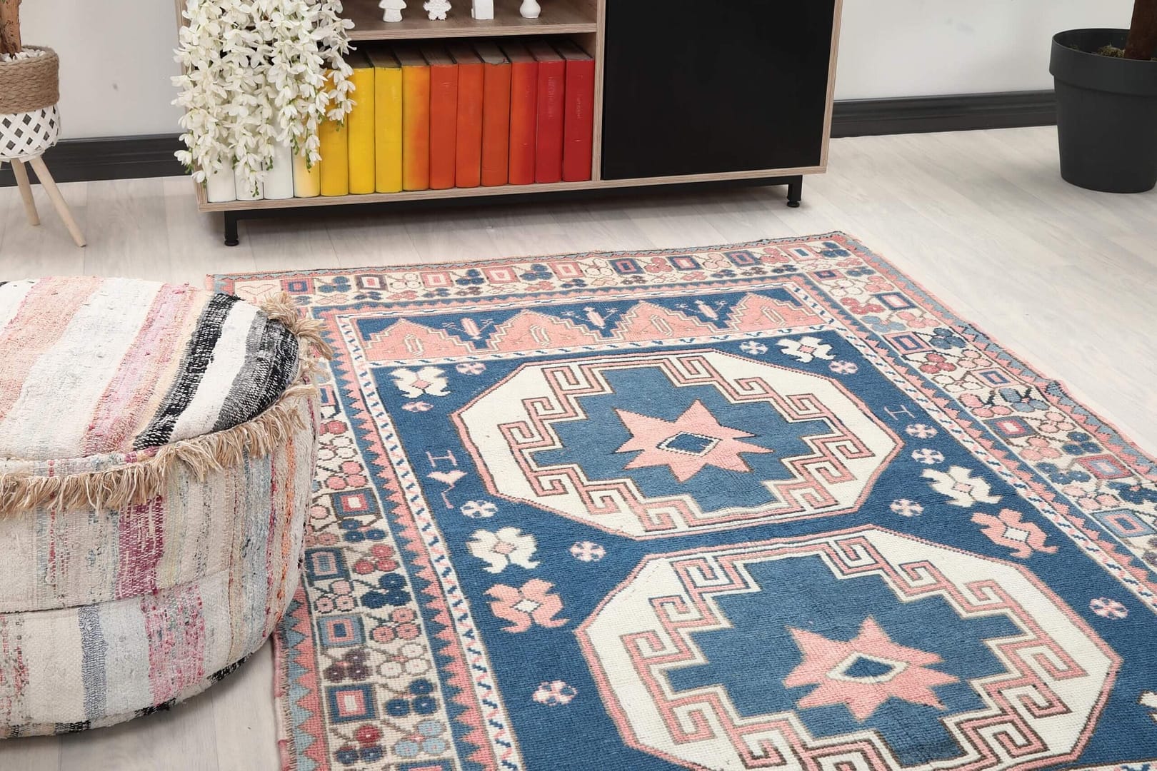 5×7 Pink Blue Handmade Rug, 5×7 Turkish Oushak Runner, Bohemian Rug, Handmade Wool Rug, Antique Rug, Wool Area Rug, Vintage Rug, Kitchen Rug