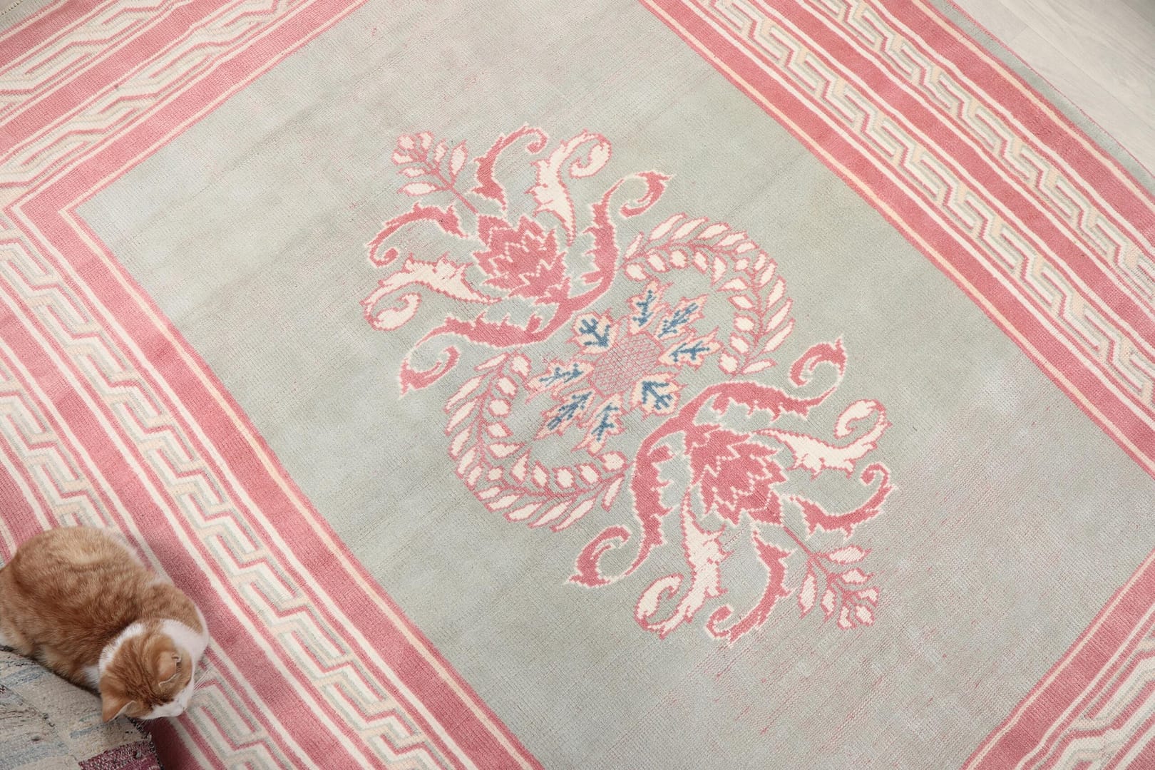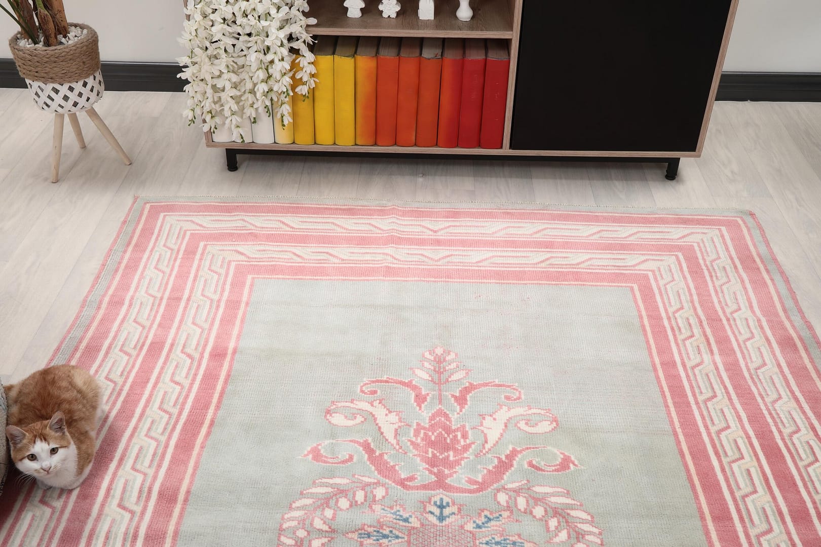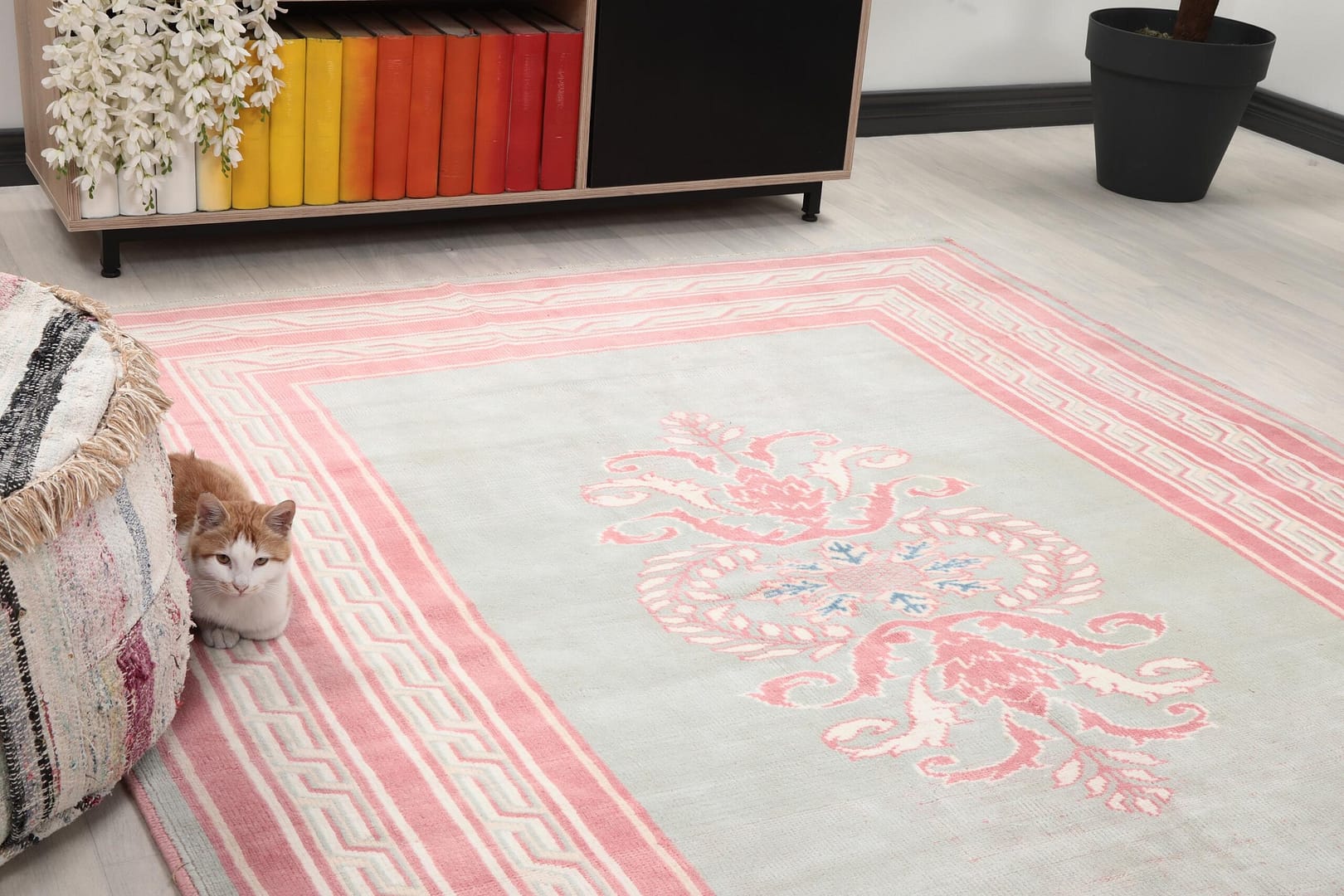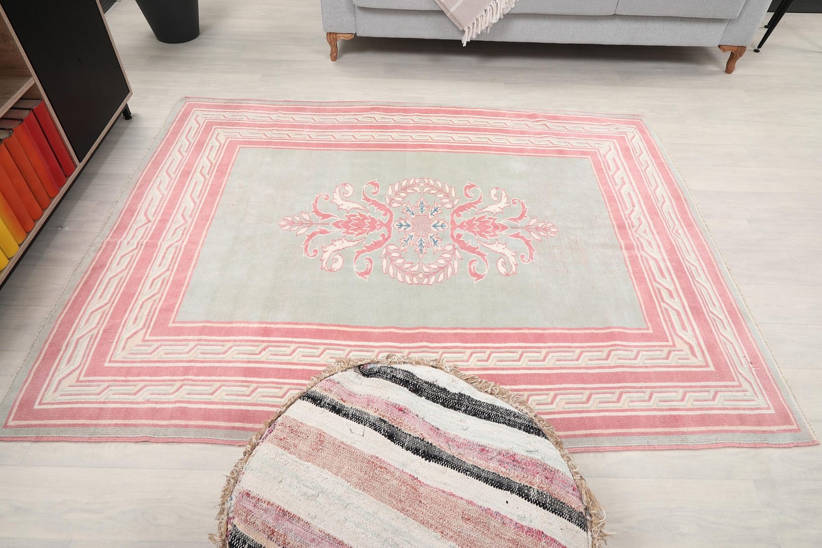 6×7 Blue Pink Turkish Rug, 6×7 Handmade Oushak Runner, Bohemian Rug, Handmade Wool Rug, Antique Wool Area Rug, Vintage Old Rug, Kitchen Rug