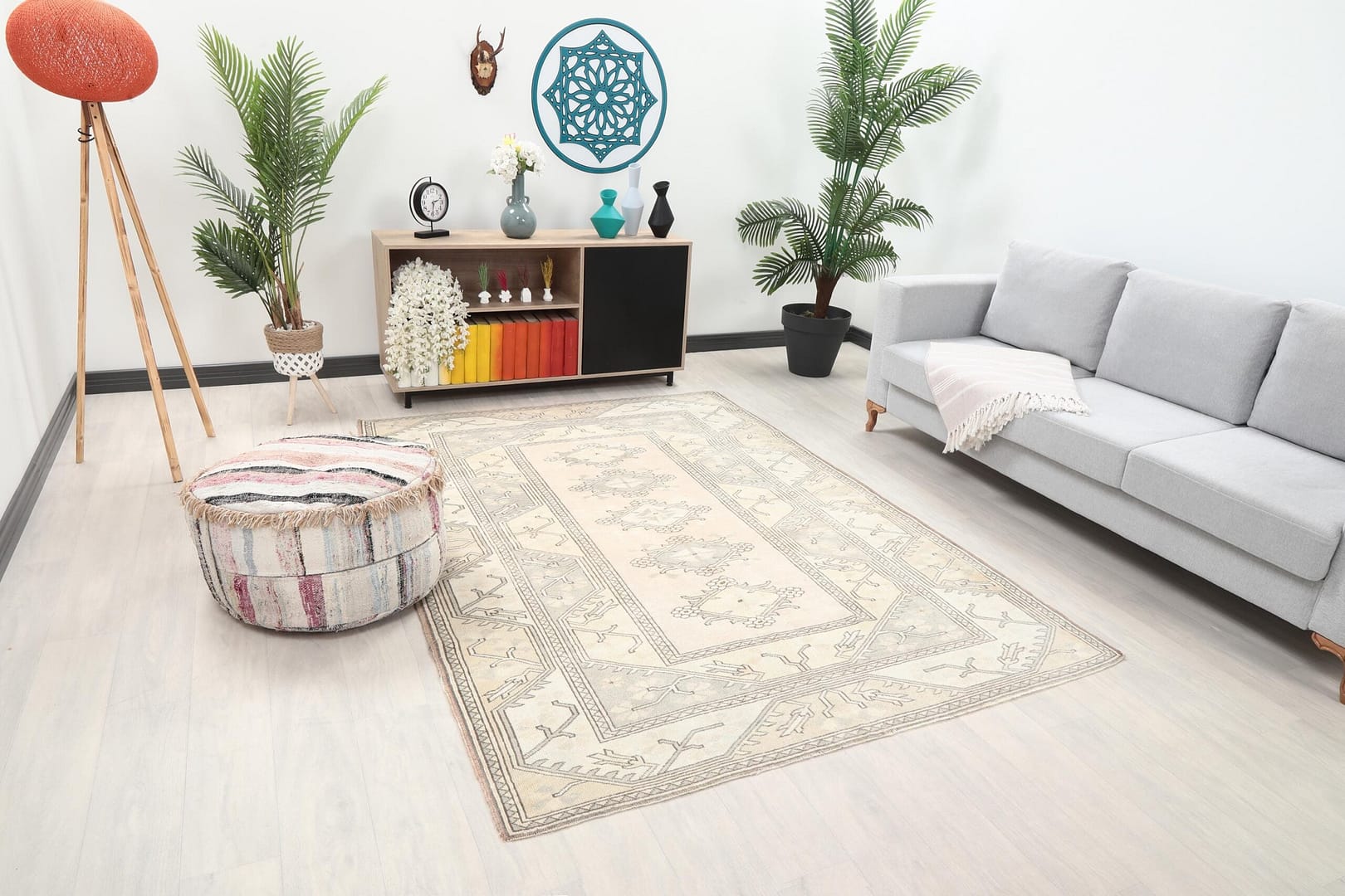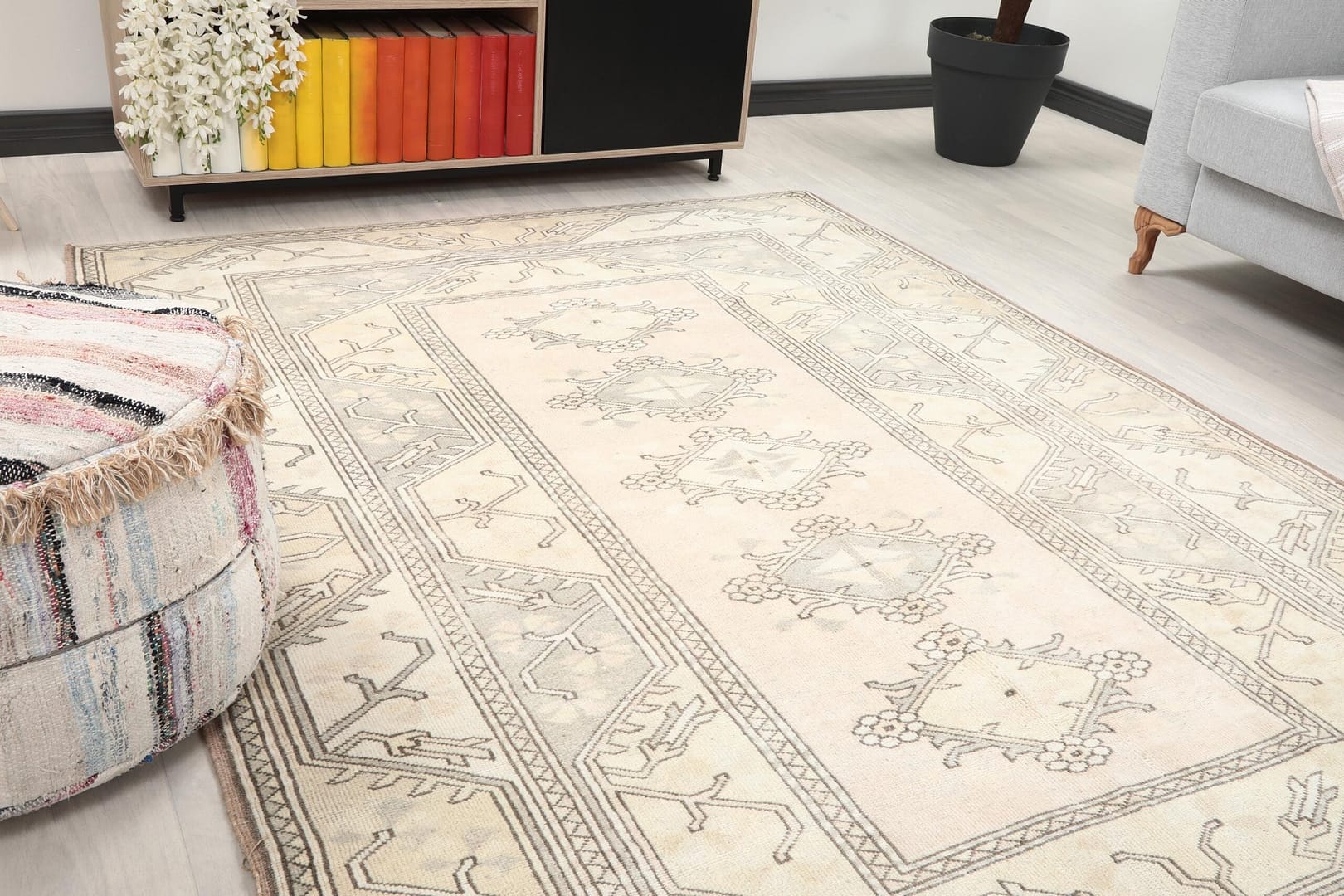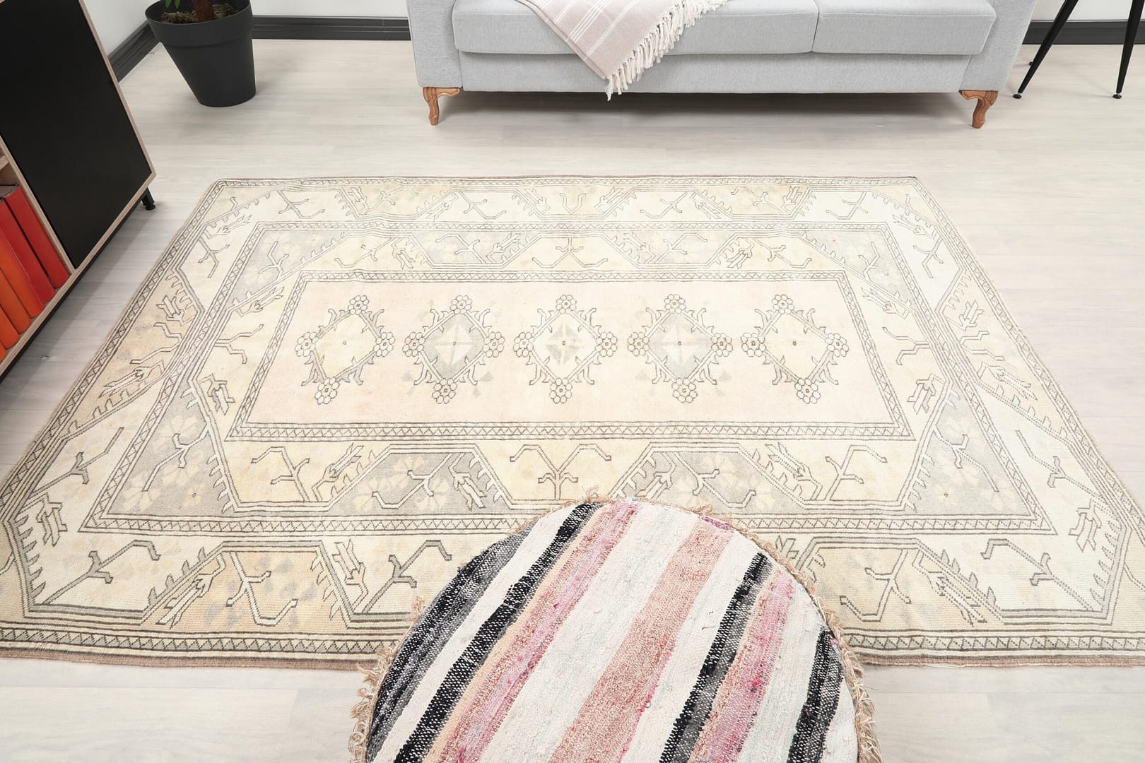 6×8 Beige Gray Blue Turkish Rug, 6×8 Oushak Area Rug, Handmade Rug, 6×8 Oversized Rug, Patterned Vintage Rug, Kitchen Rug, Living Room Rug