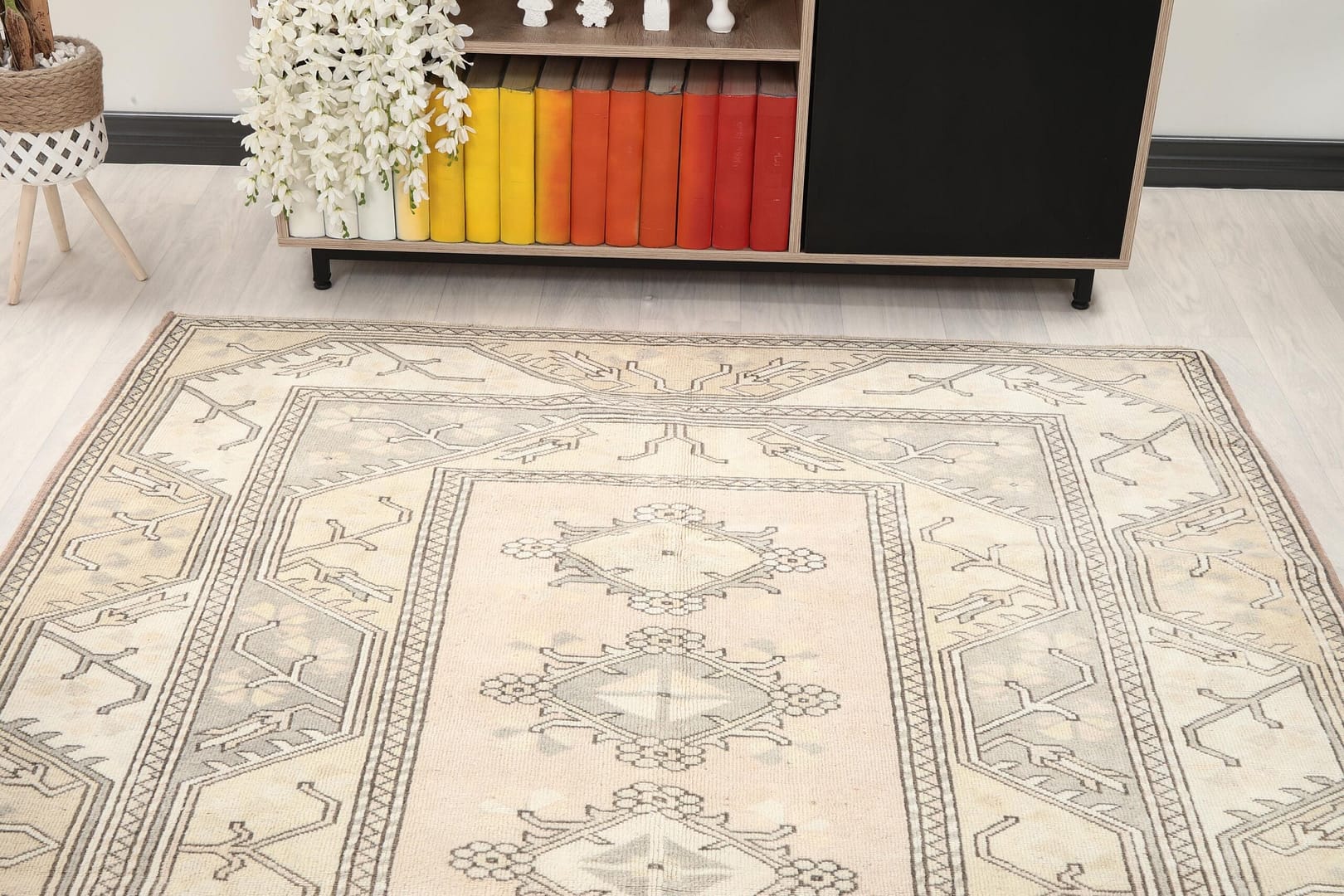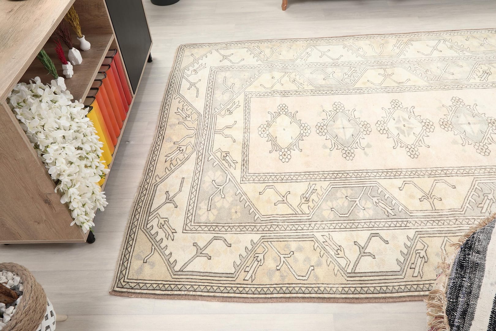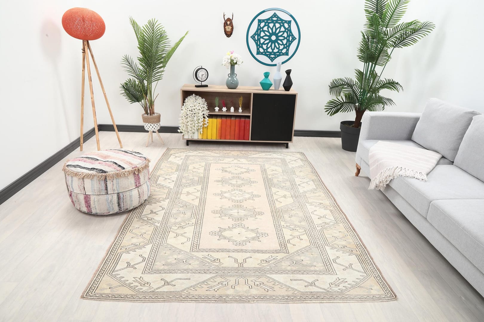 6×8 Beige Gray Blue Turkish Rug, 6×8 Oushak Area Rug, Handmade Rug, 6×8 Oversized Rug, Patterned Vintage Rug, Kitchen Rug, Living Room Rug
