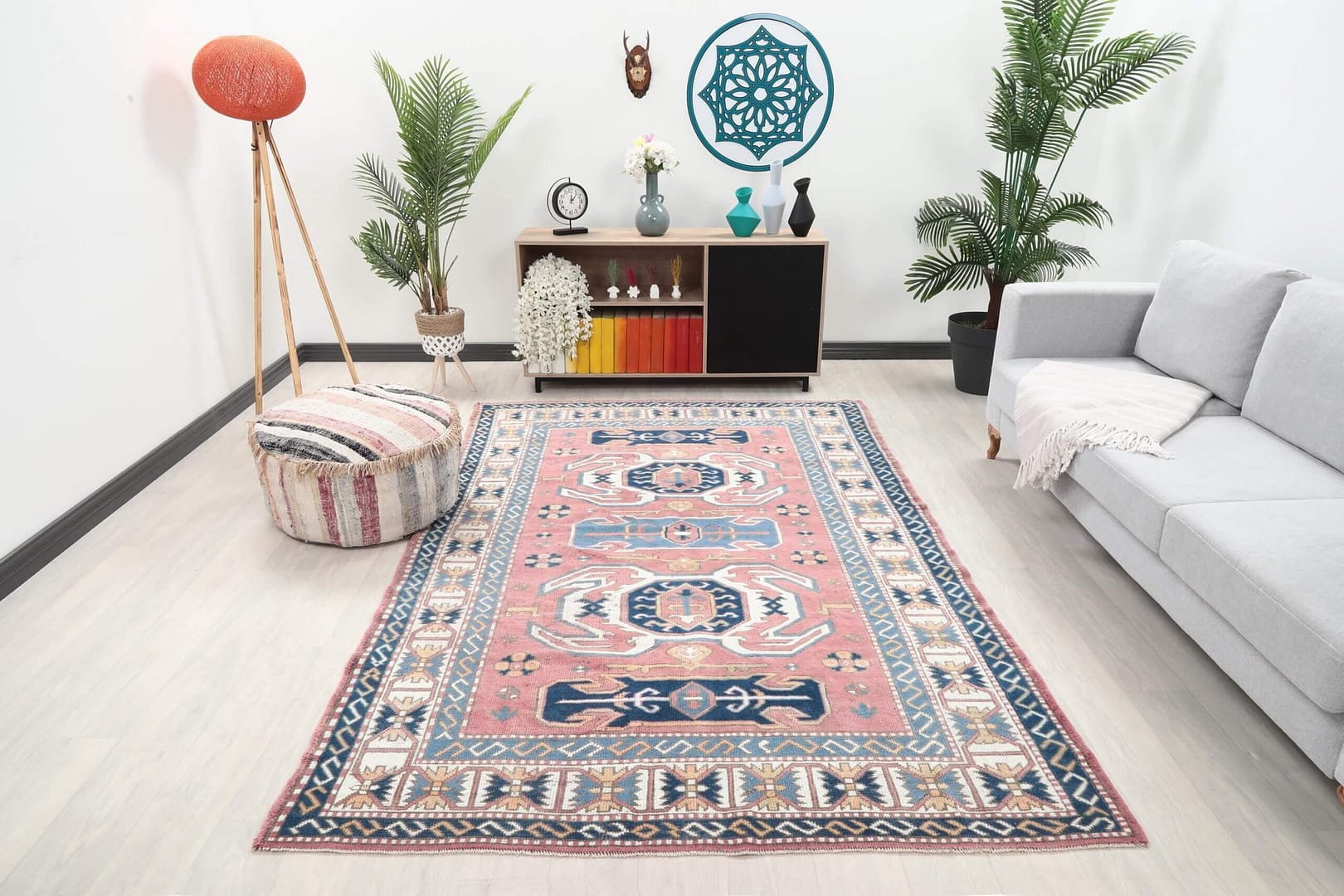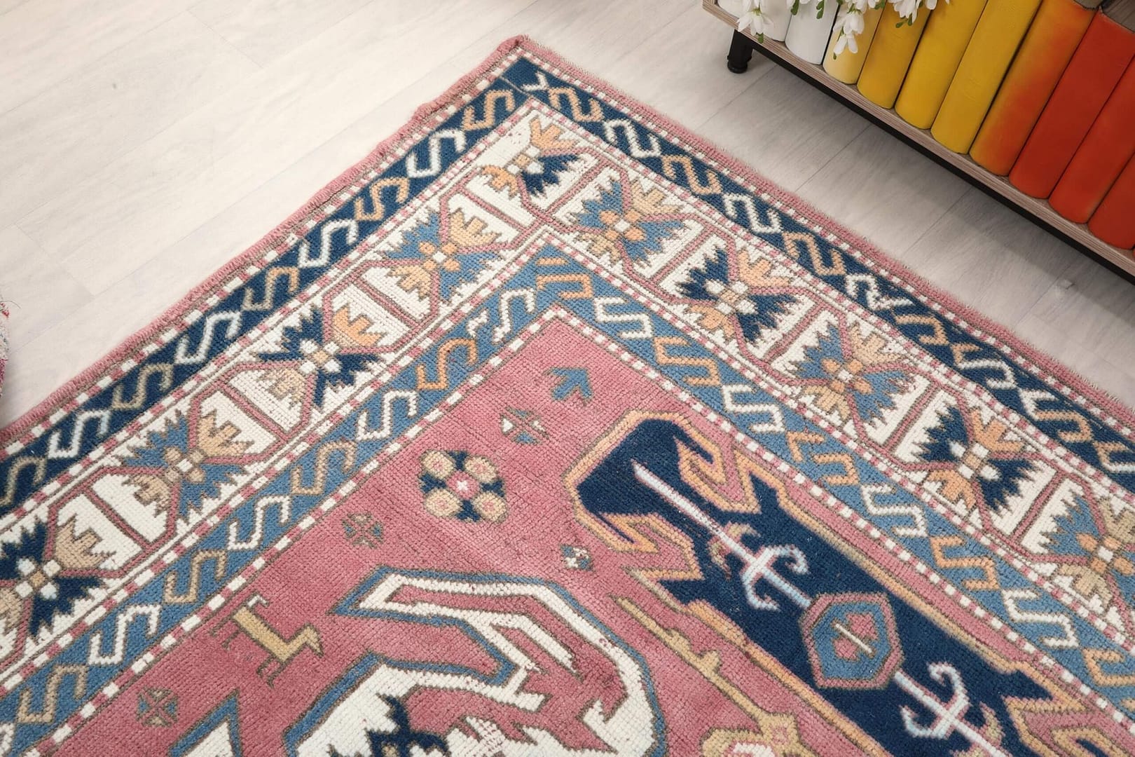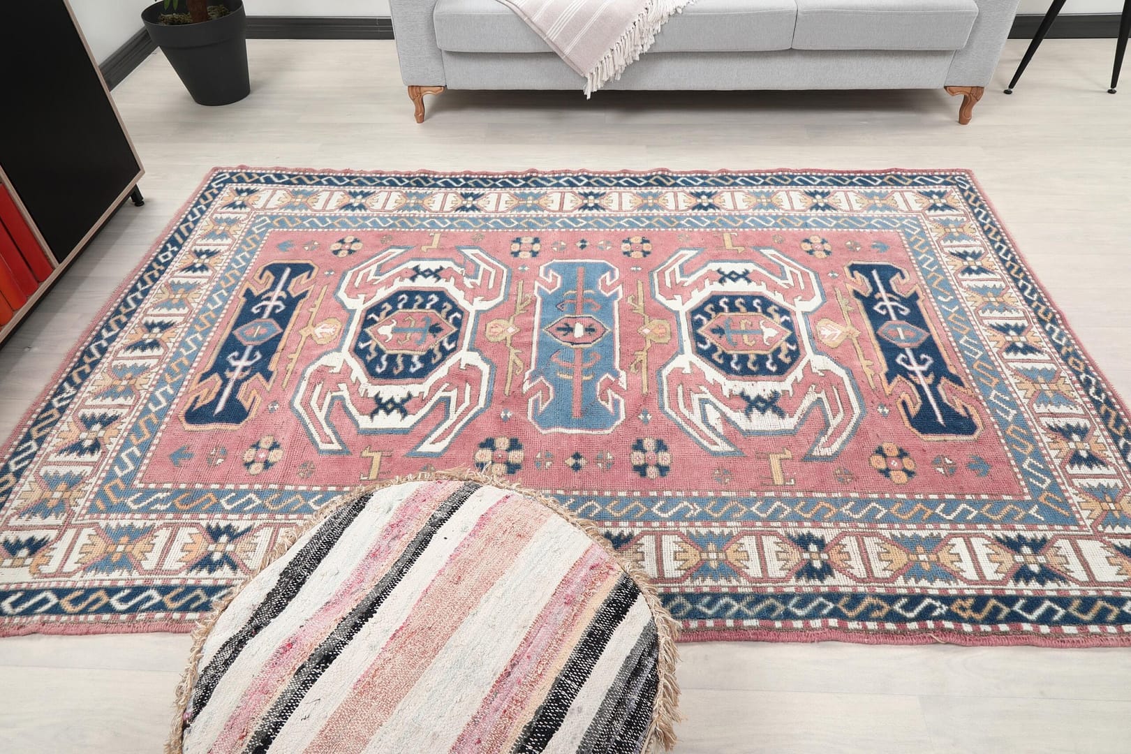 6×9 Pink Blue Turkish Rug, 6×9 Oushak Area Rug, Vintage Handmade Rug, Boho Wool Rug, Vintage Rug, Kitchen Rug, Living Room Rug, Antique Rug