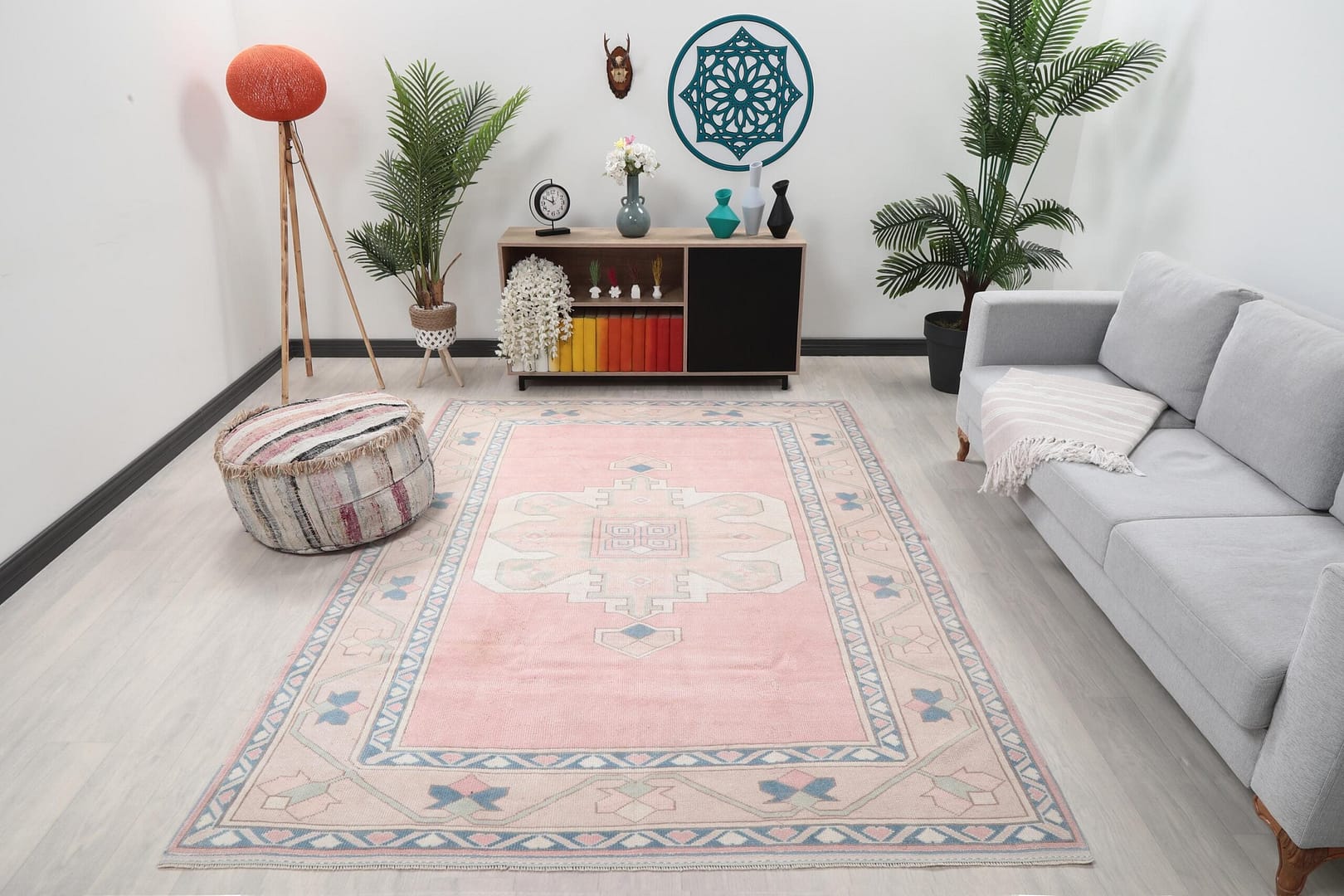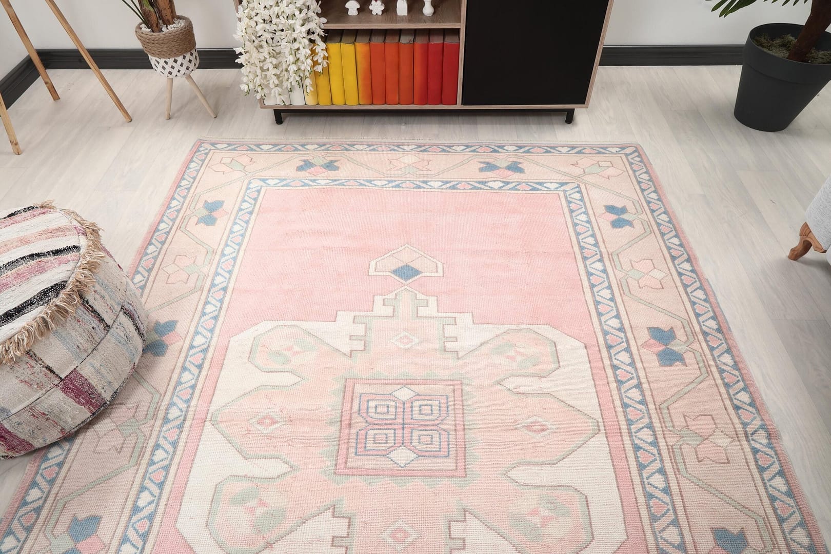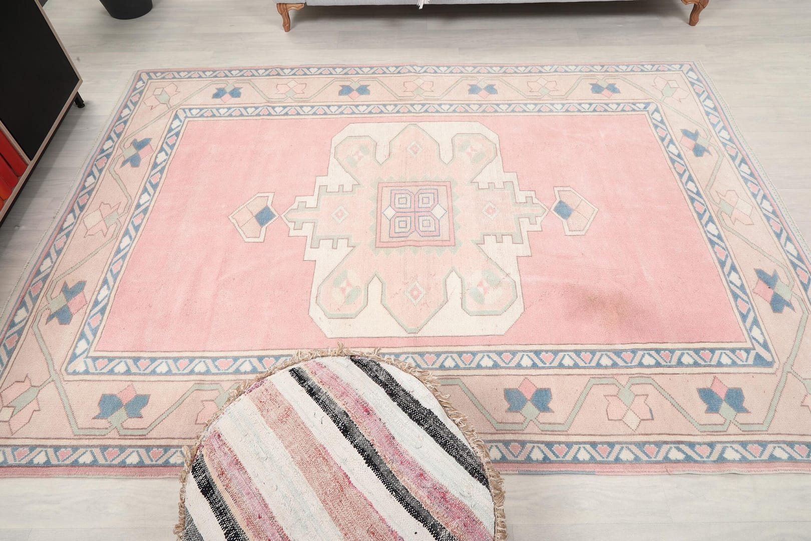 6×9 Pink Colorful Turkish Rug, 6×9 Oushak Area Rug, Vintage Handmade Rug, Boho Rug, Vintage Rug, Kitchen Rug, Living Room Rug, Antique Rug