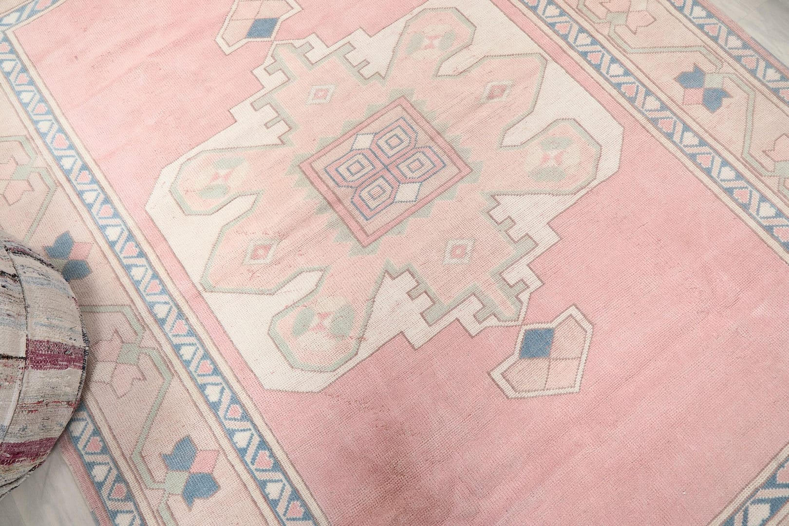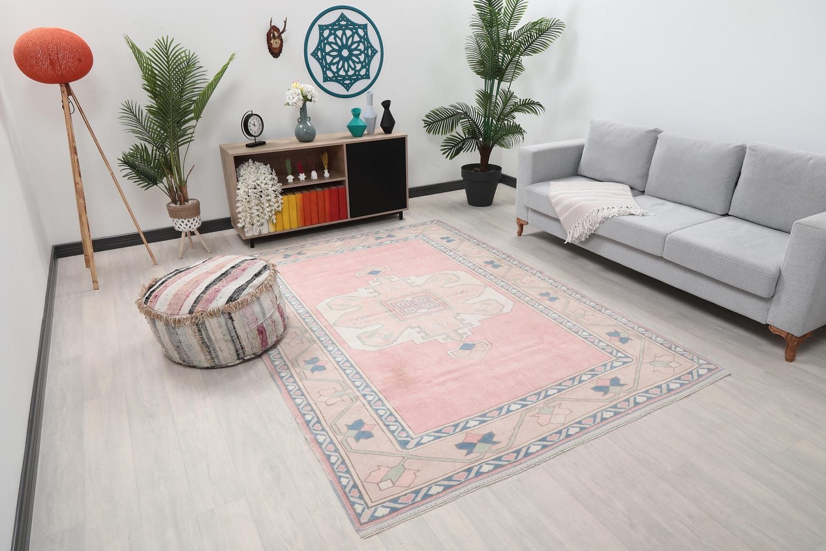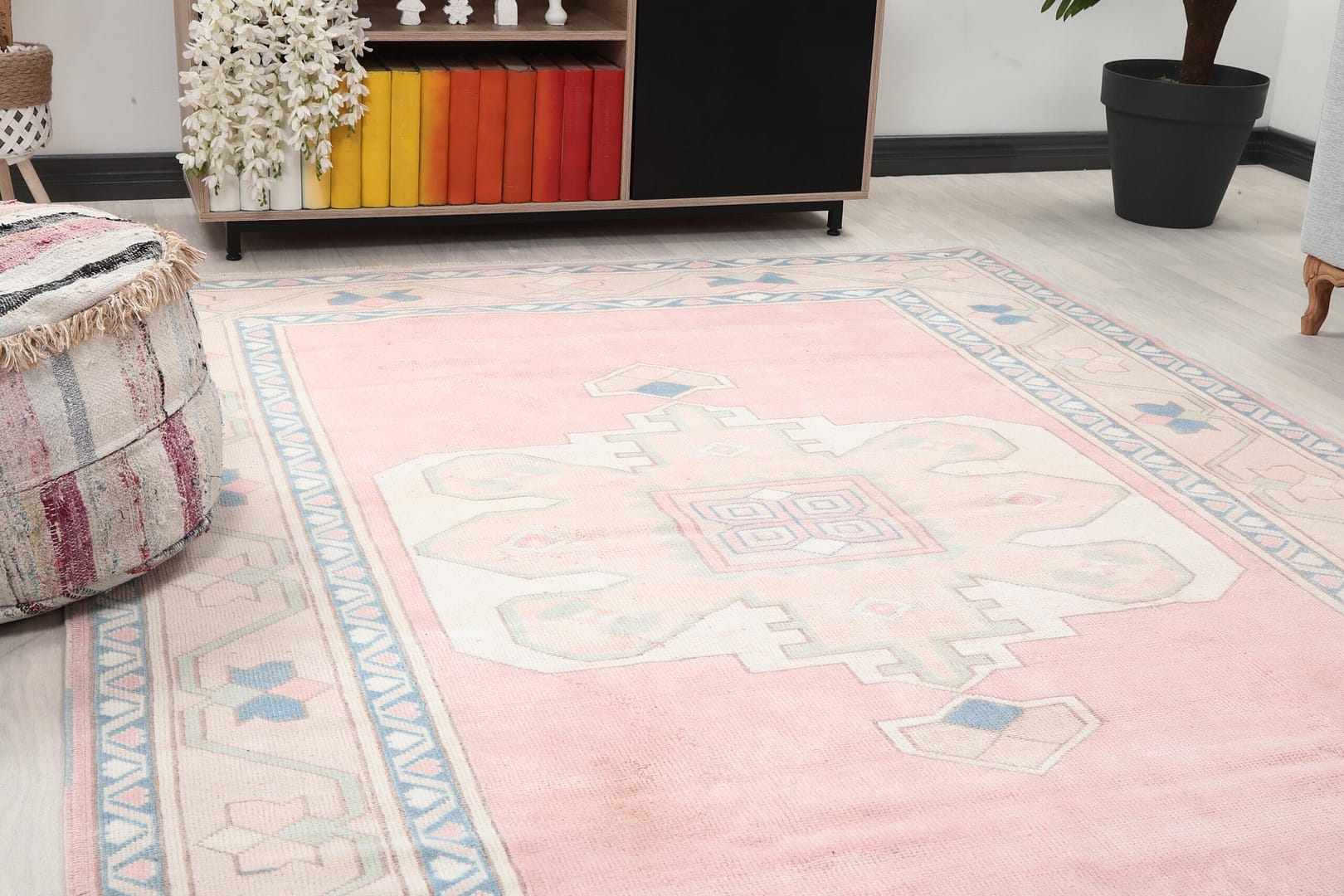 6×9 Pink Colorful Turkish Rug, 6×9 Oushak Area Rug, Vintage Handmade Rug, Boho Rug, Vintage Rug, Kitchen Rug, Living Room Rug, Antique Rug
