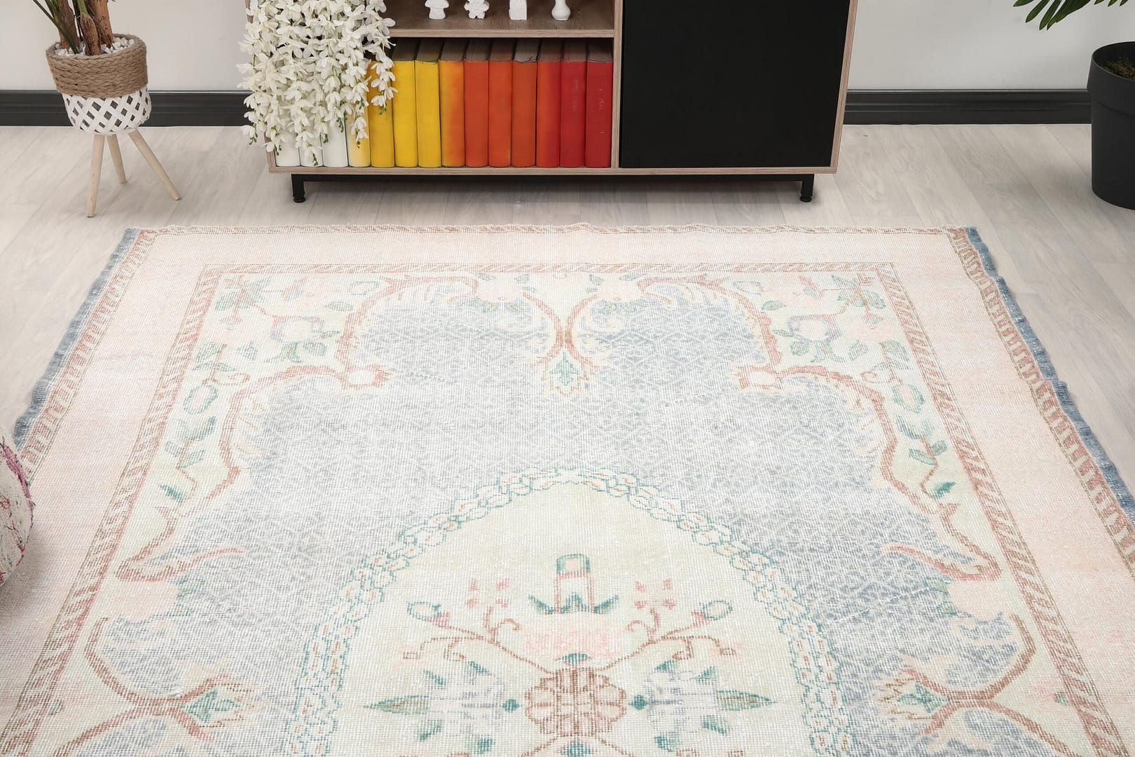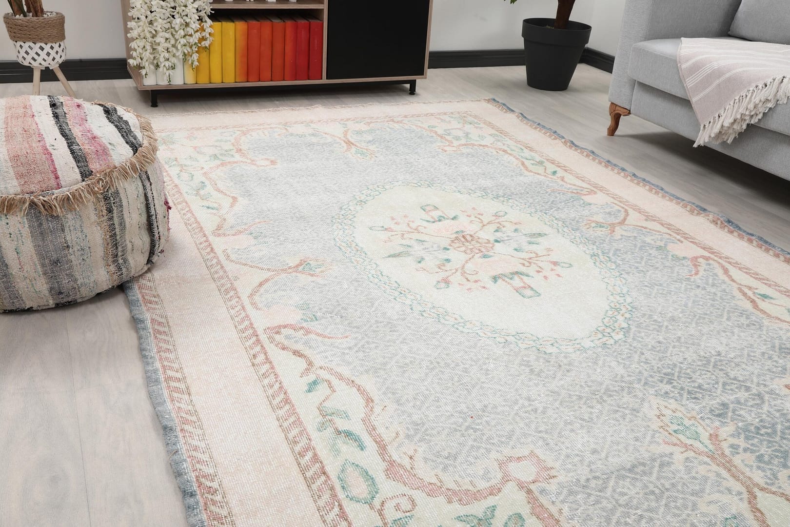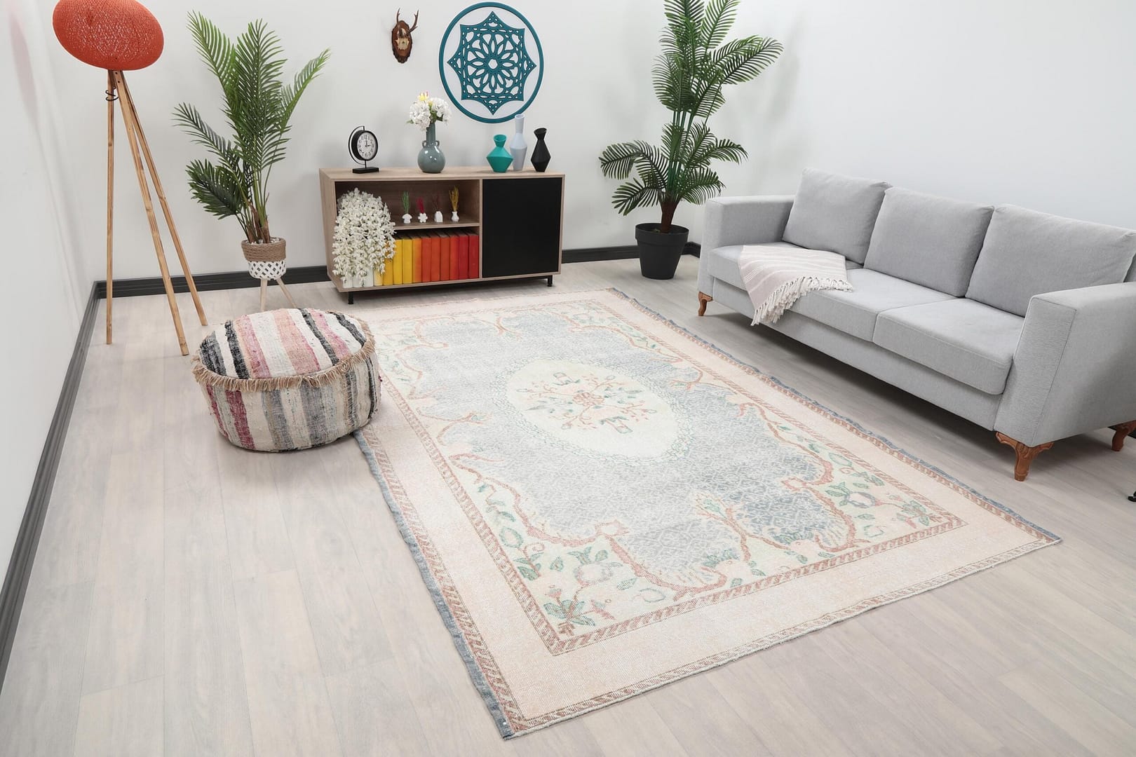 6×10 Floral Blue Turkish Rug, 6×10 Oushak Rug, Handmade Rug, Wool Rug, Floor Area Rug, Vintage Rug, Kitchen Rug, Living Room Rug,Bedroom Rug