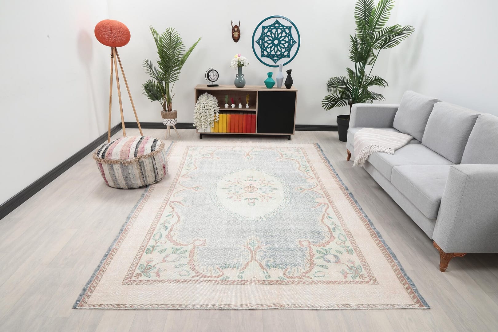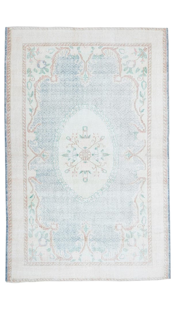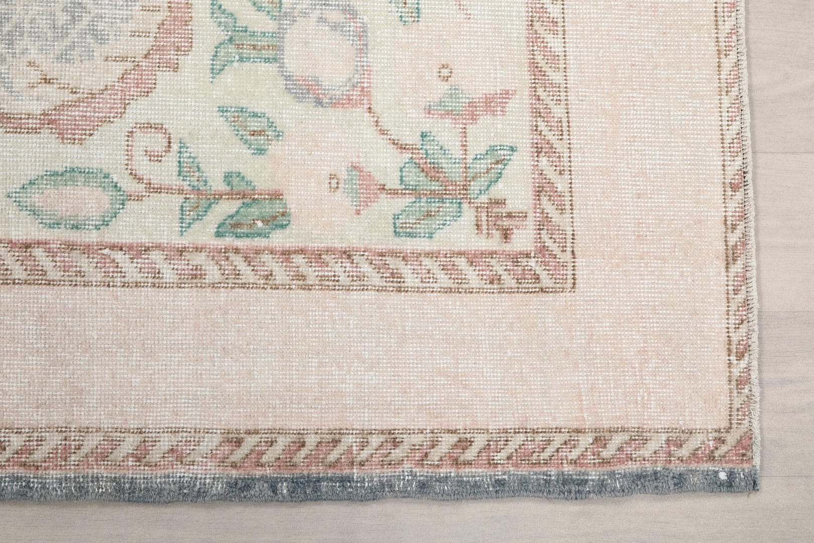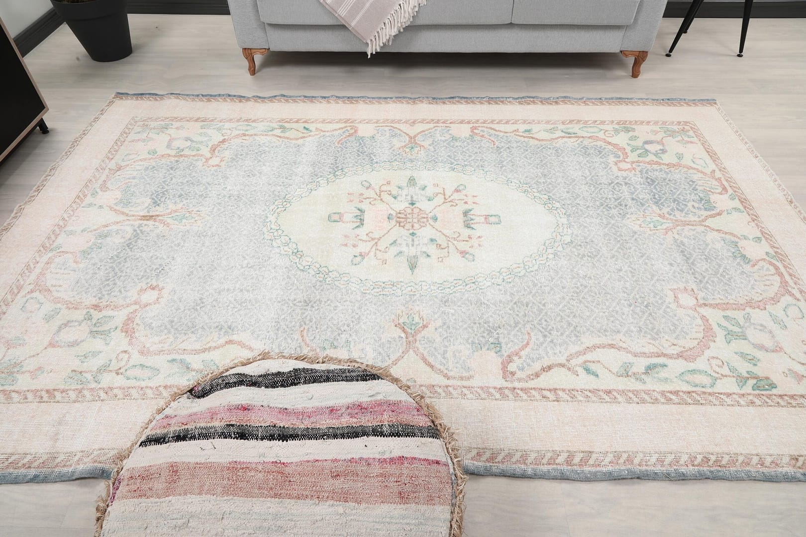 6×10 Floral Blue Turkish Rug, 6×10 Oushak Rug, Handmade Rug, Wool Rug, Floor Area Rug, Vintage Rug, Kitchen Rug, Living Room Rug,Bedroom Rug