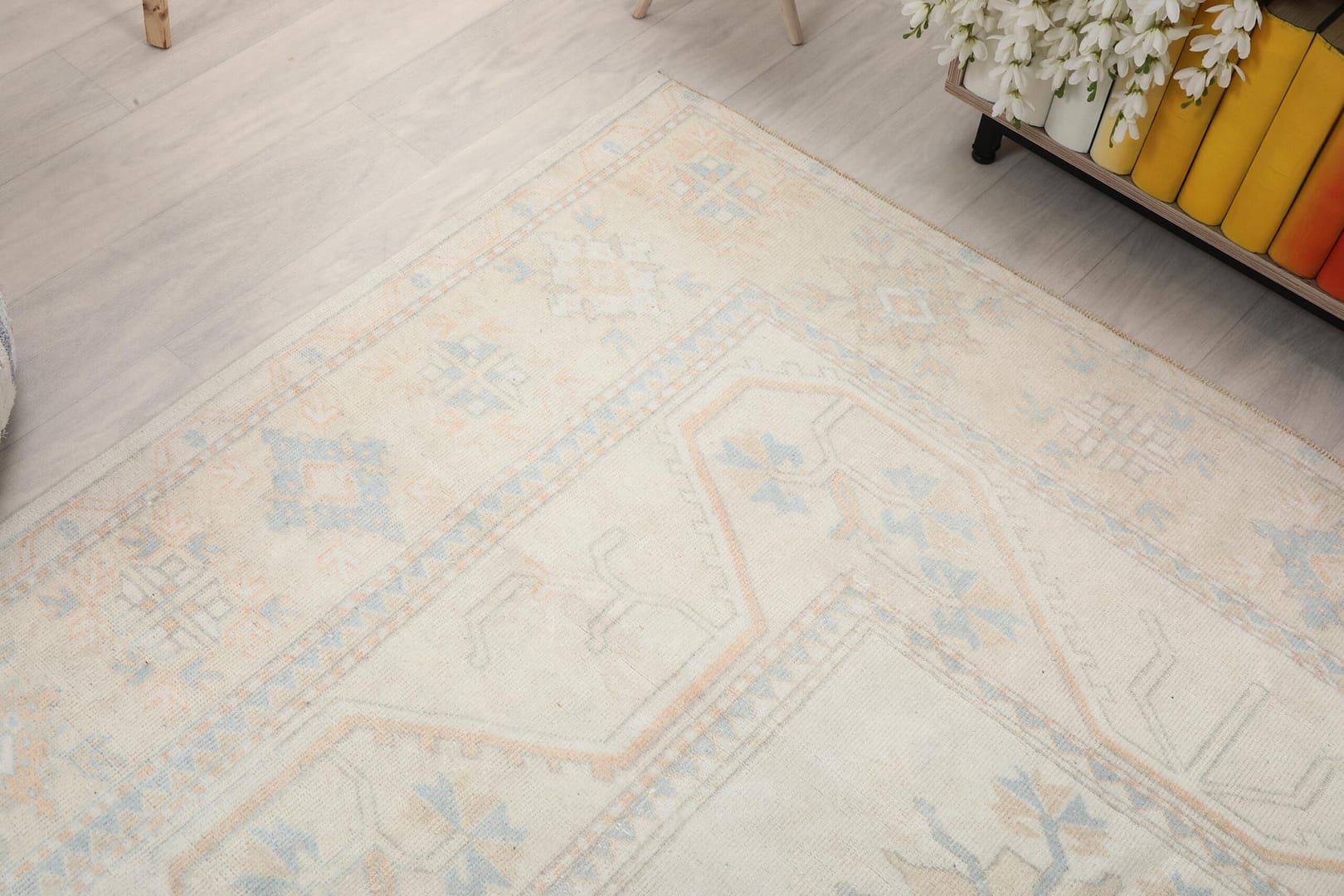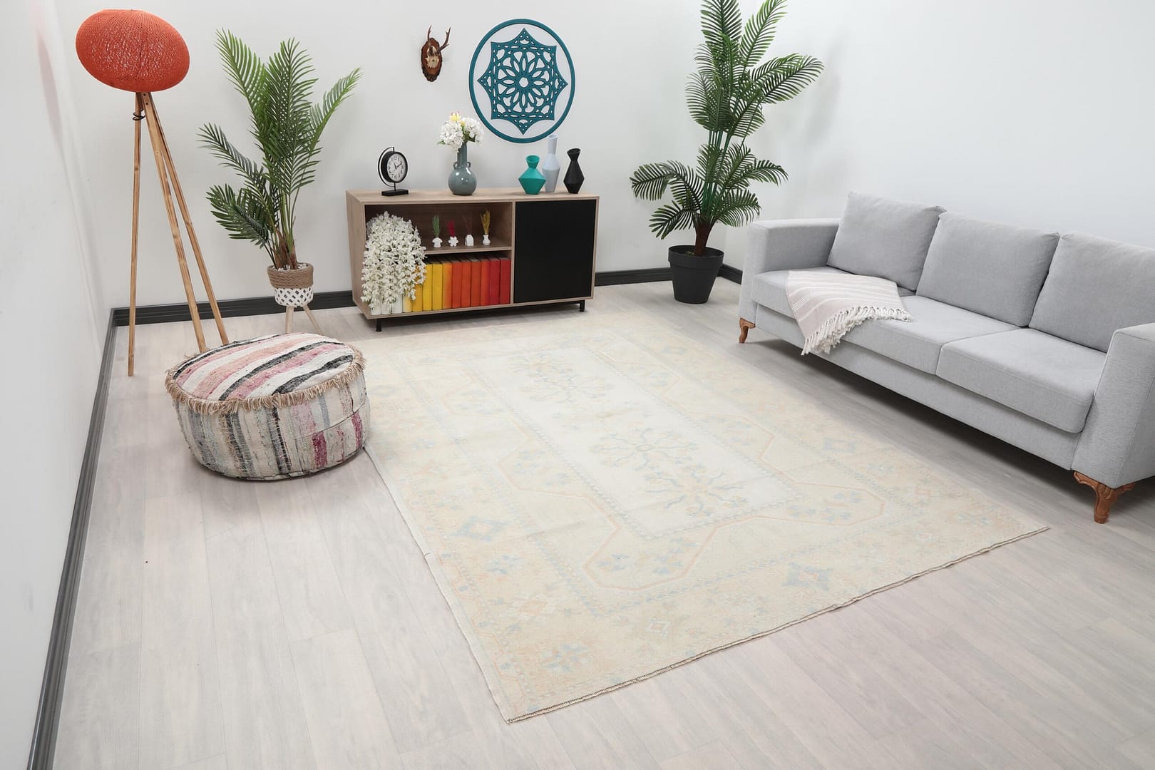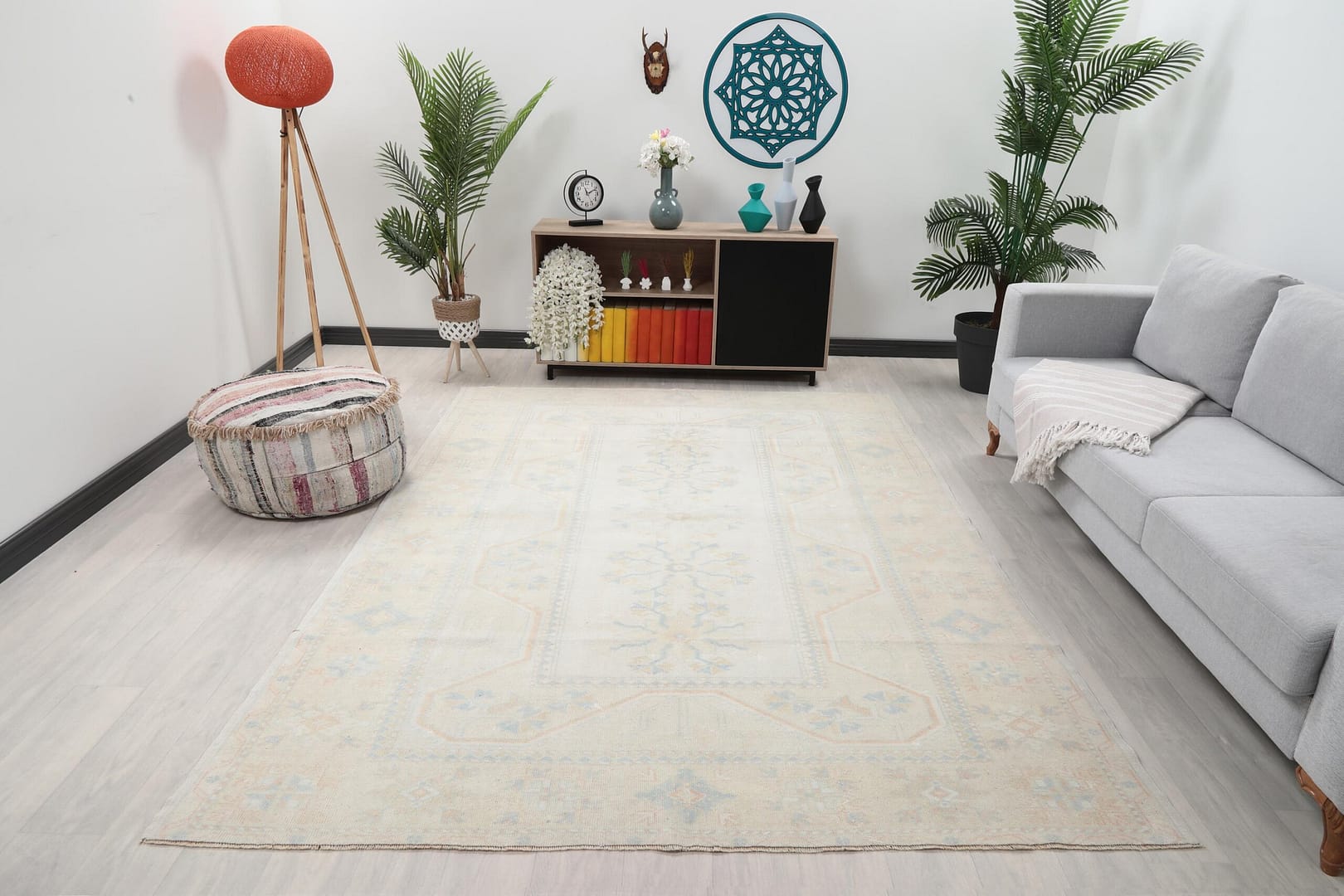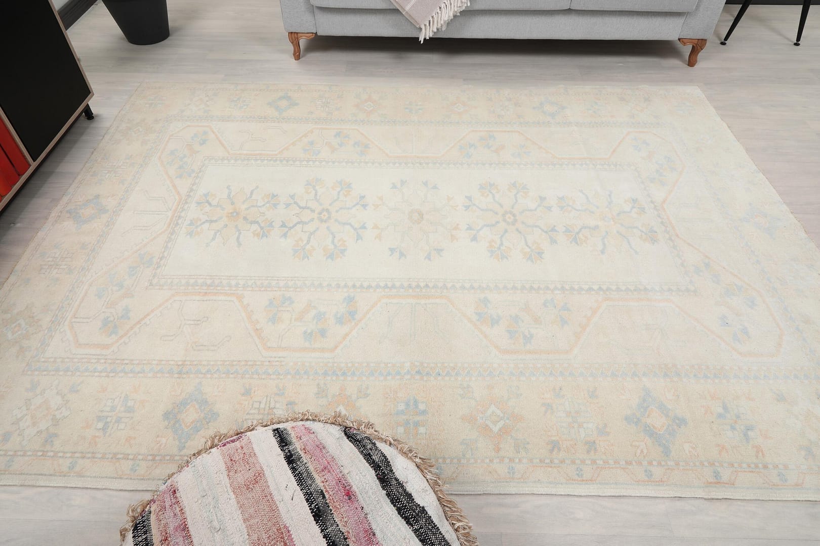 7×9 Beige Blue Orange Turkish Rug, 7×9 Oushak Area Rug, Bedroom Handmade Rug, Bohemain Wool Rug, Vintage Rug,7×9 Kitchen Rug,Living Room Rug