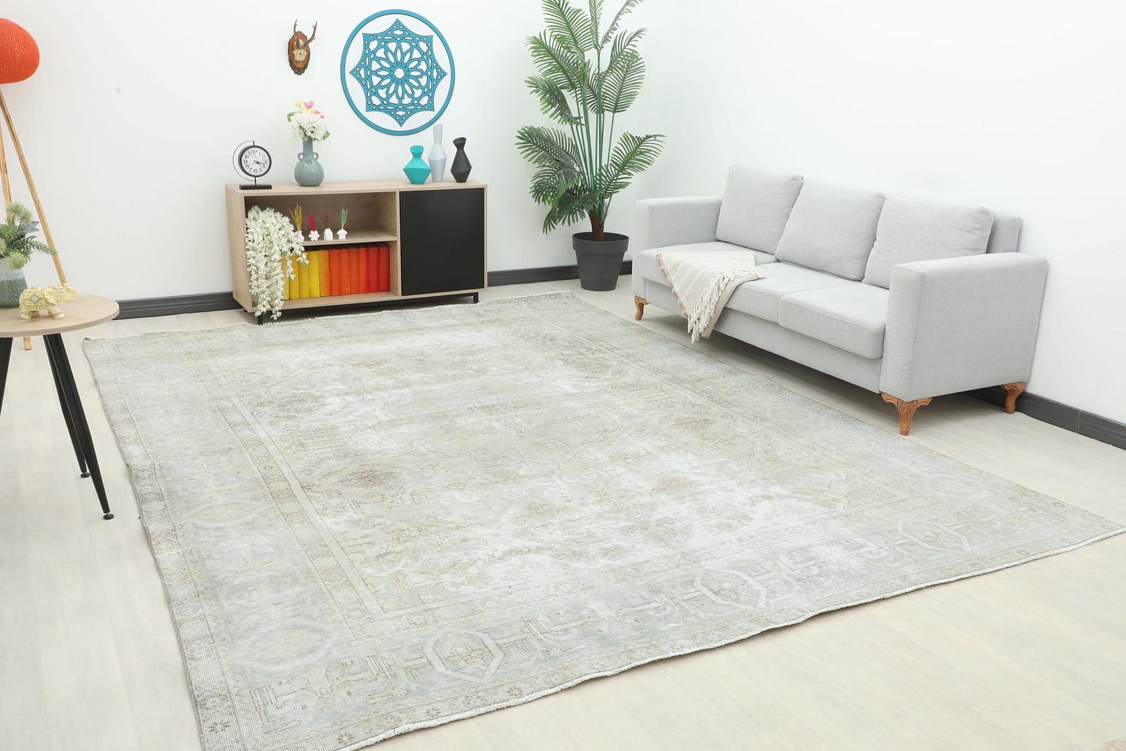 9×12 Beige Brown Blue Persian Rug, Oversized Rug, 9×12 Turkish Rug, 9×12 Vintage Rug, Handmade Rug, Decor Rug,Large Area Rug,Saloon Wool Rug