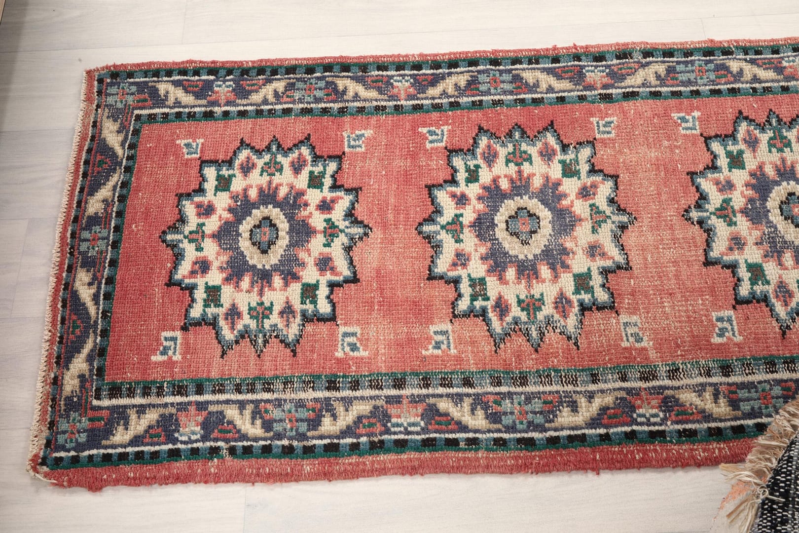 2×11 Vintage Red Blue Green Runner, 2×11 Oushak Runner, Bohemian Runner,Handmade Rug, Antique Rug, Turkish Rug,Kitchen Runner,Hallway Runner