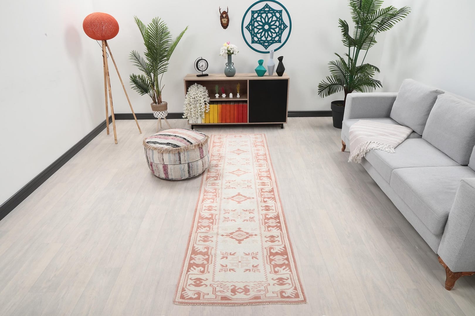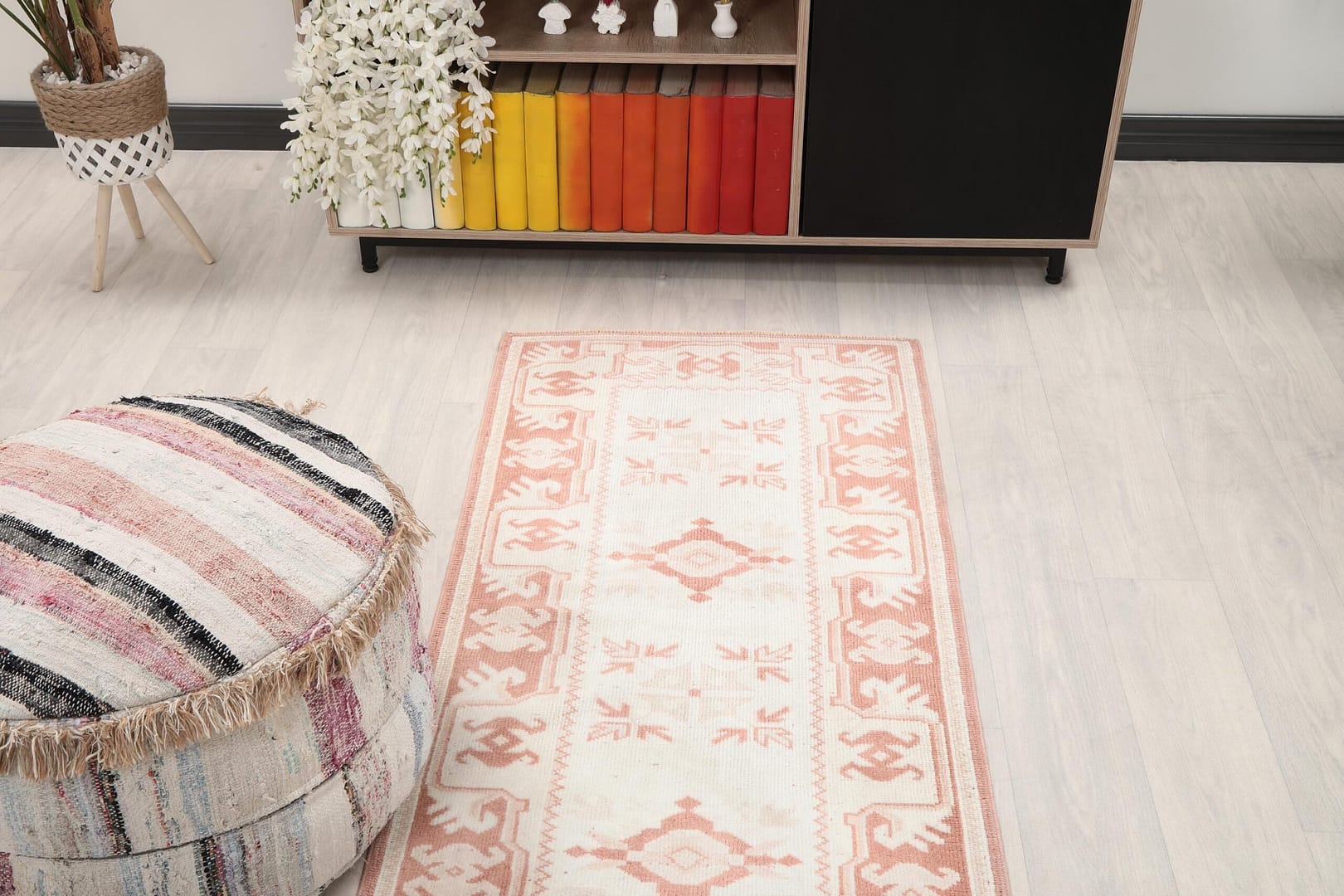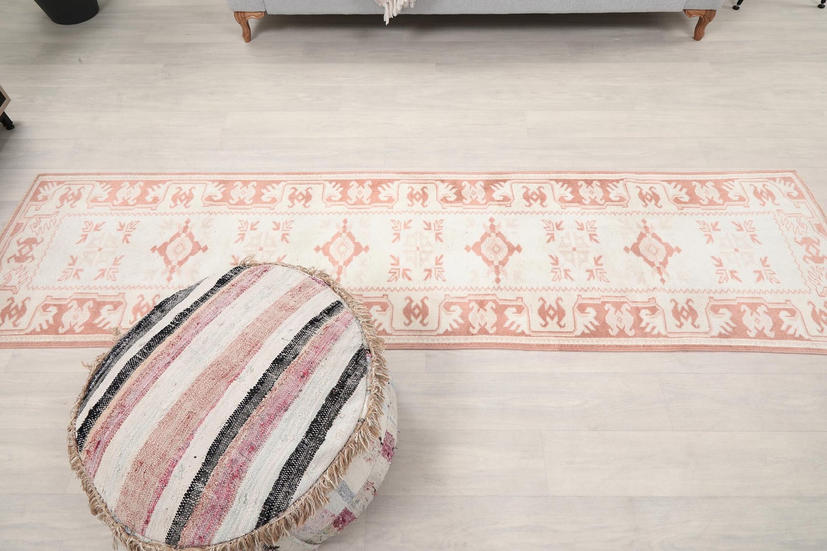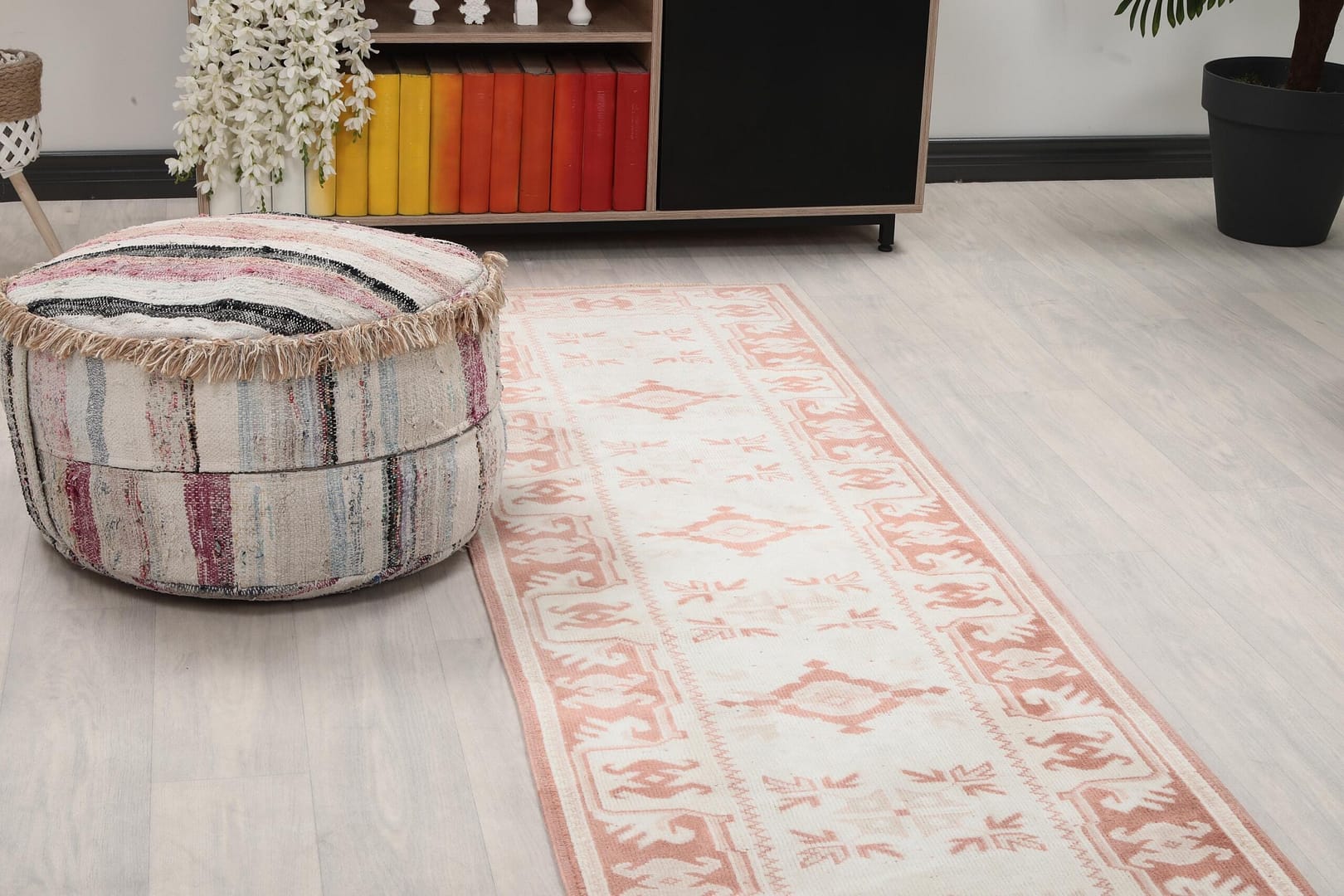 2×9 Vintage Pink Beige Runner, 2×9 Handmade Rug, Oushak Runner, Bohemian Runner, Turkish Runner, Kitchen Runner, Stair Runner,Corridor Rug
