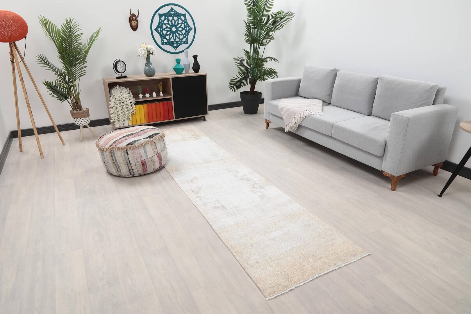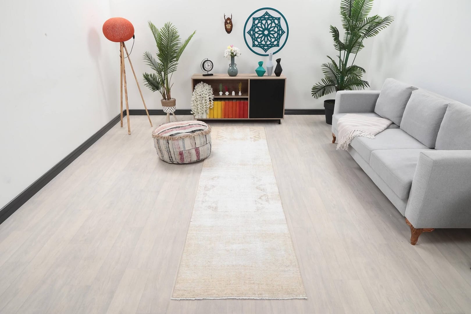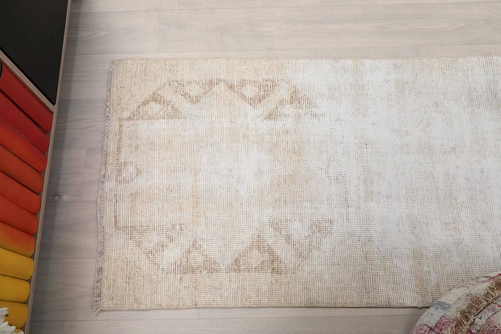 3×11 Beige Vintage Runner, 3×11 Oushak Runner, Hallway Bohemian Runner, Turkish Handmade Rug, Antique Rug,Distressed Area Rug,Kitchen Runner