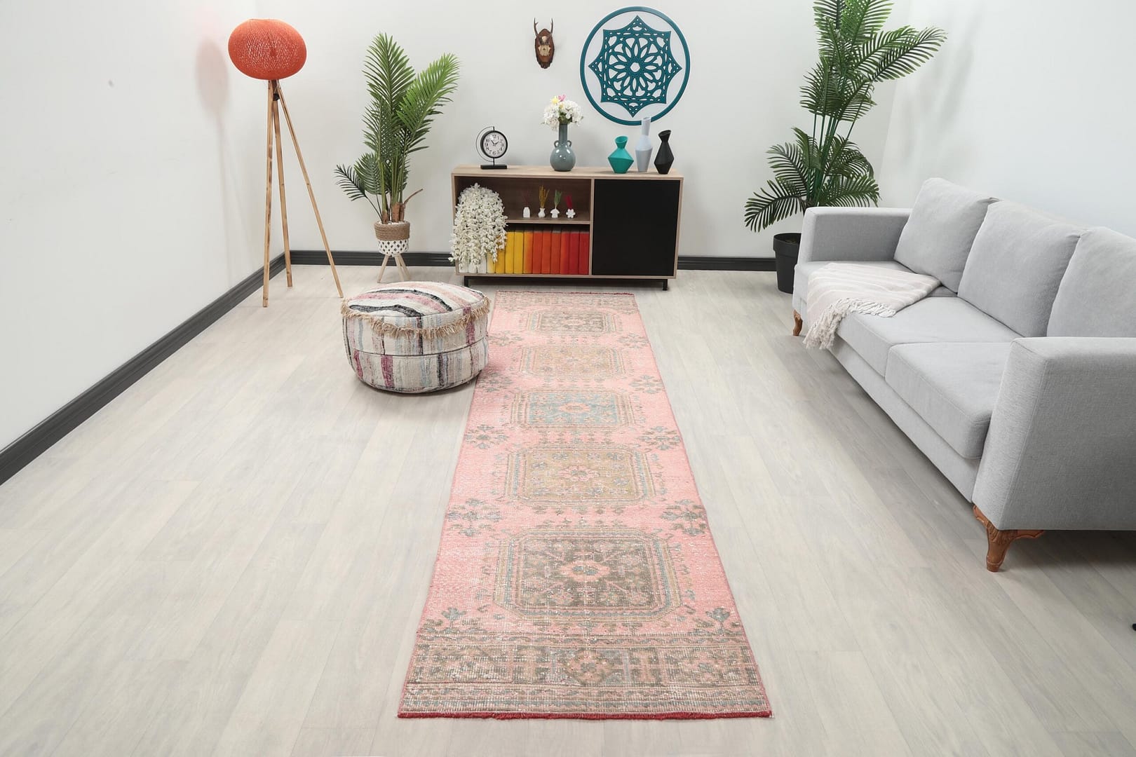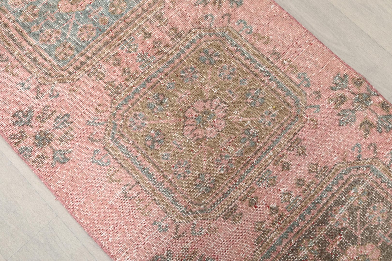 3×11 Pink Blue Turkish Runner Rug, 3×11 Oushak Runner, Hallway Bohemian Runner, Handmade Rug, Antique Rug, Vintage Area Rug, Kitchen Runner