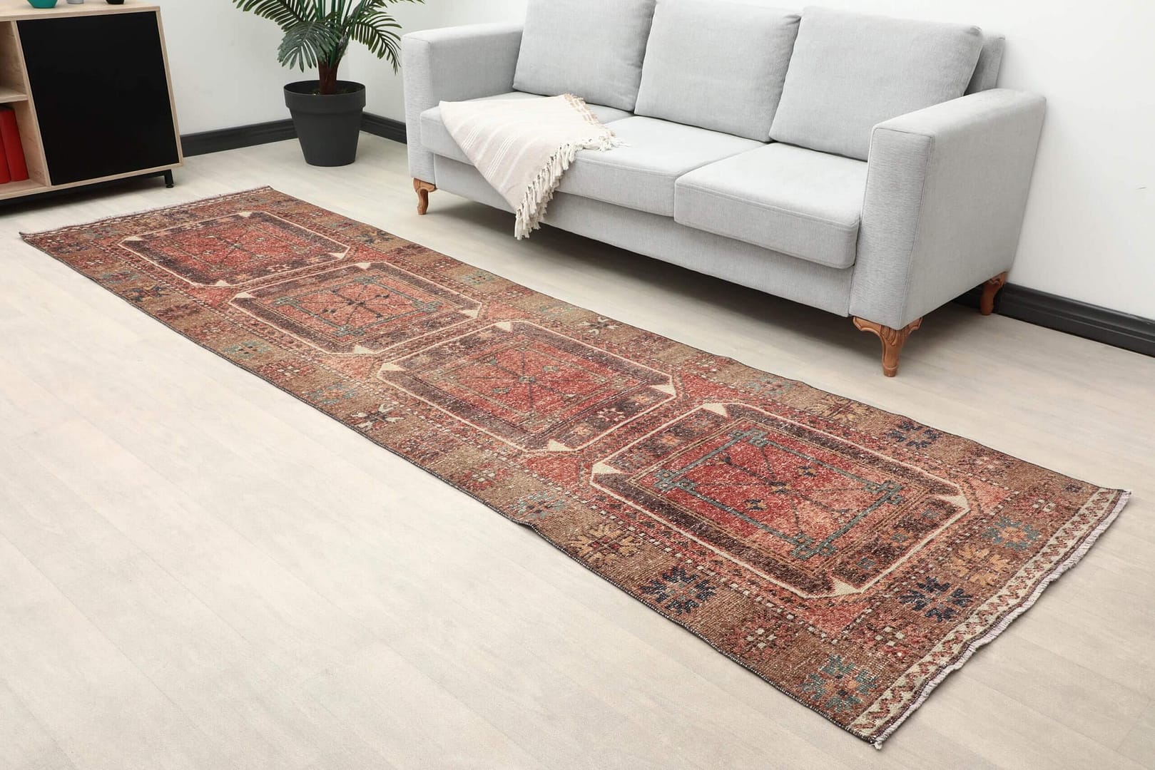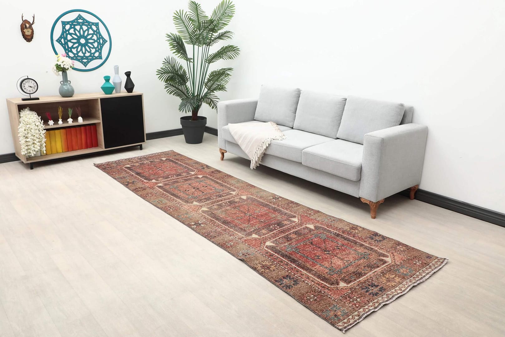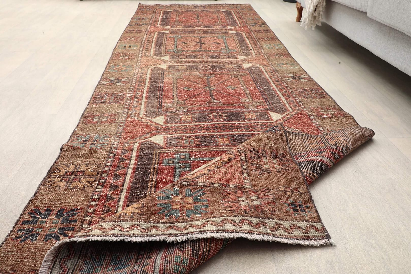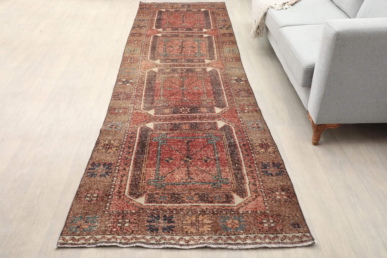 3×11 Red Brown Turkish Runner, 3×11 Oushak Runner, Hallway Bohemian Runner, Handmade Rug, Antique Rug, Vintage Area Rug, Kitchen Runner