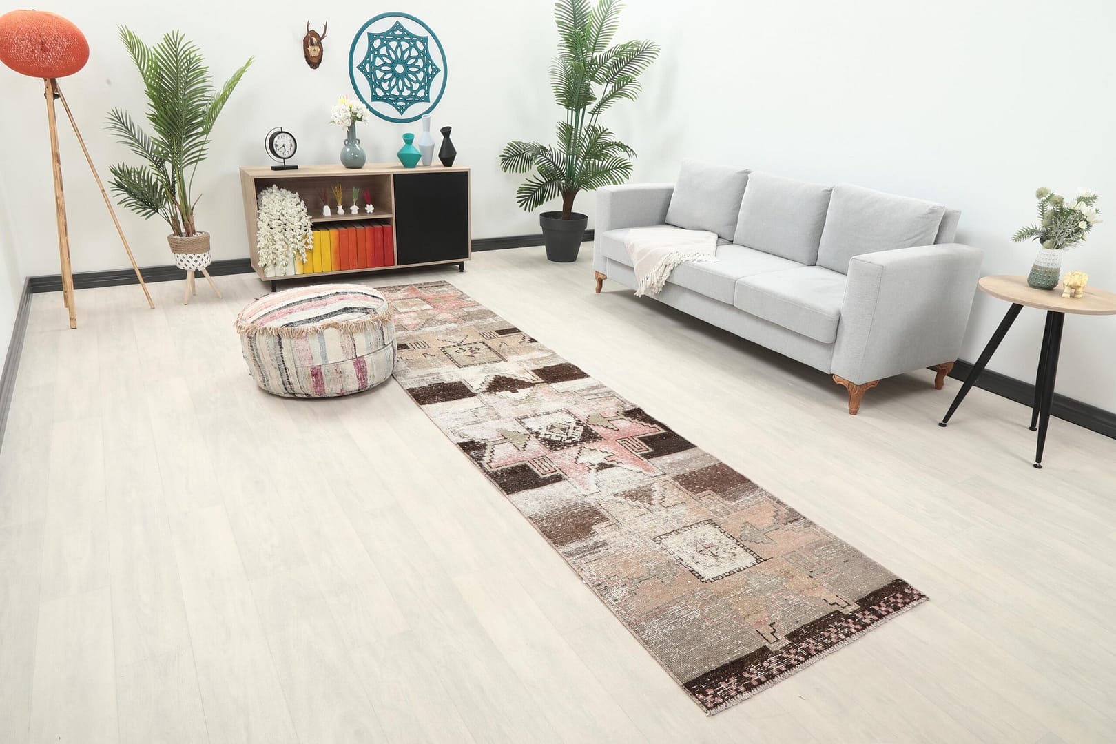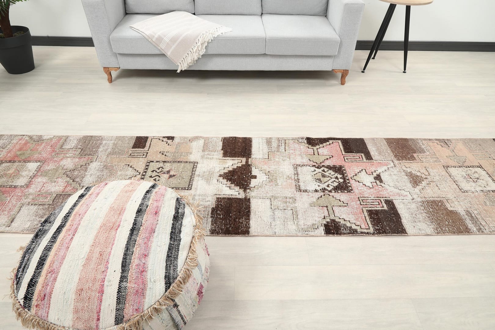 3×12 Pink Beige Brown Runner, 3×12 Oushak Runner, 3×12 Bohemian Runner, Handmade Rug, Vintage Rug, Turkish Neutral Runner, Muted Rug