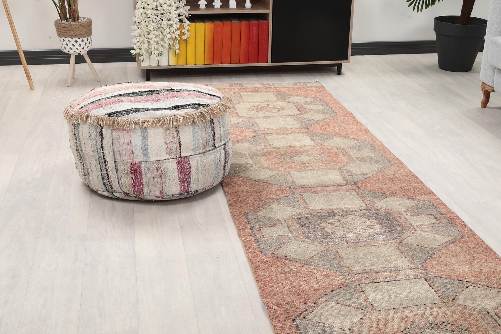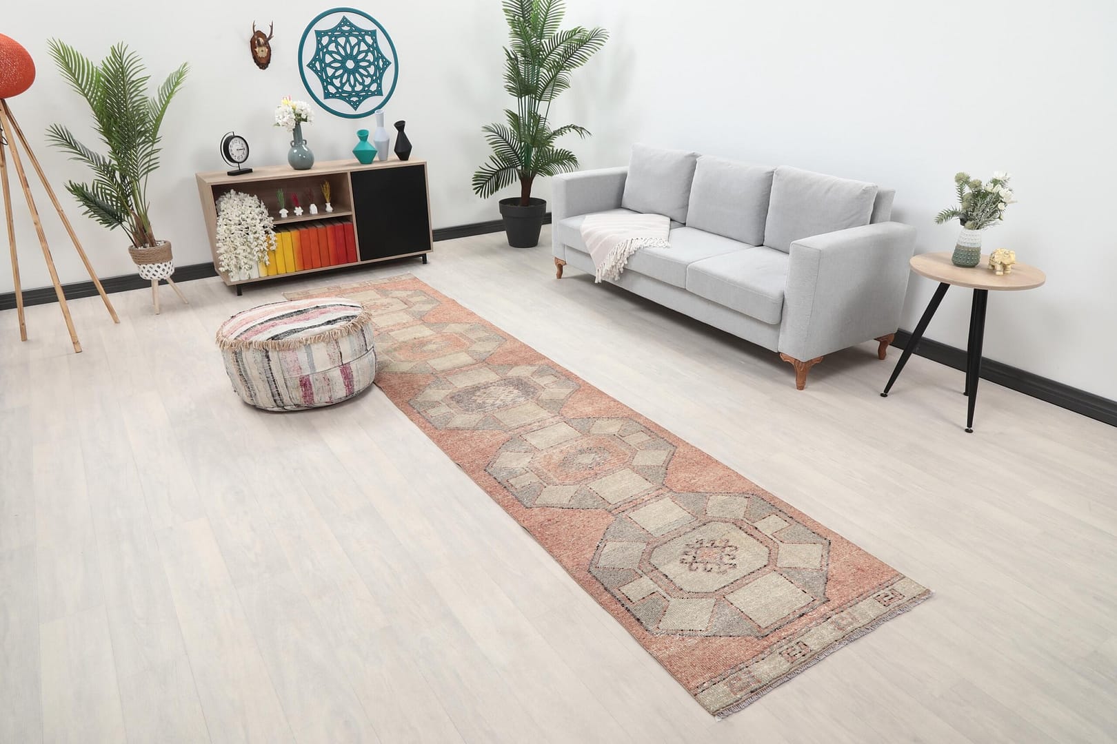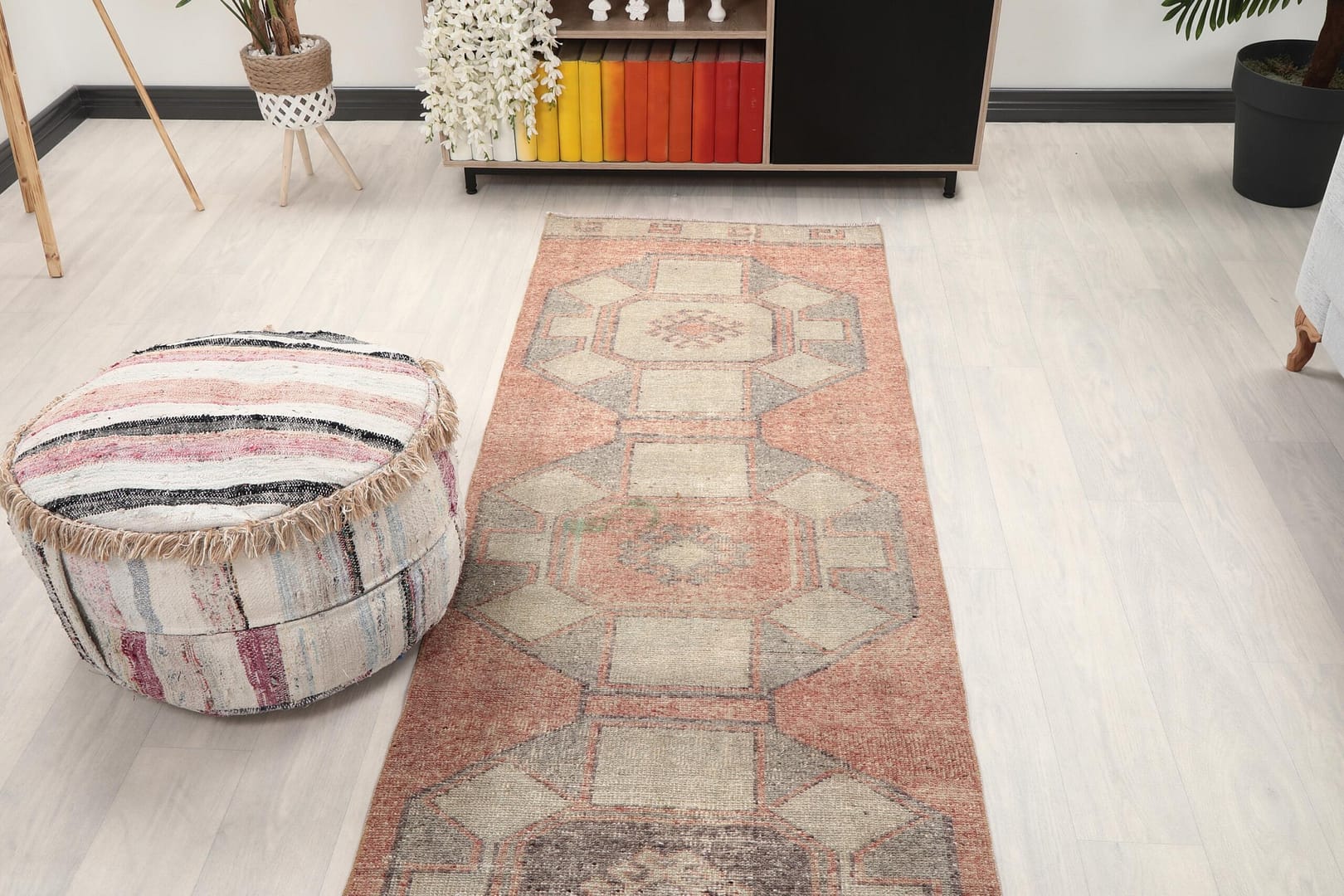 3×13 Red Beige Turkish Runner, 3×13 Oushak Runner, 3×13 Bohemian Runner, Handwoven Rug, Vintage Wool Runner, Hallway Wool Runner, Faded Rug