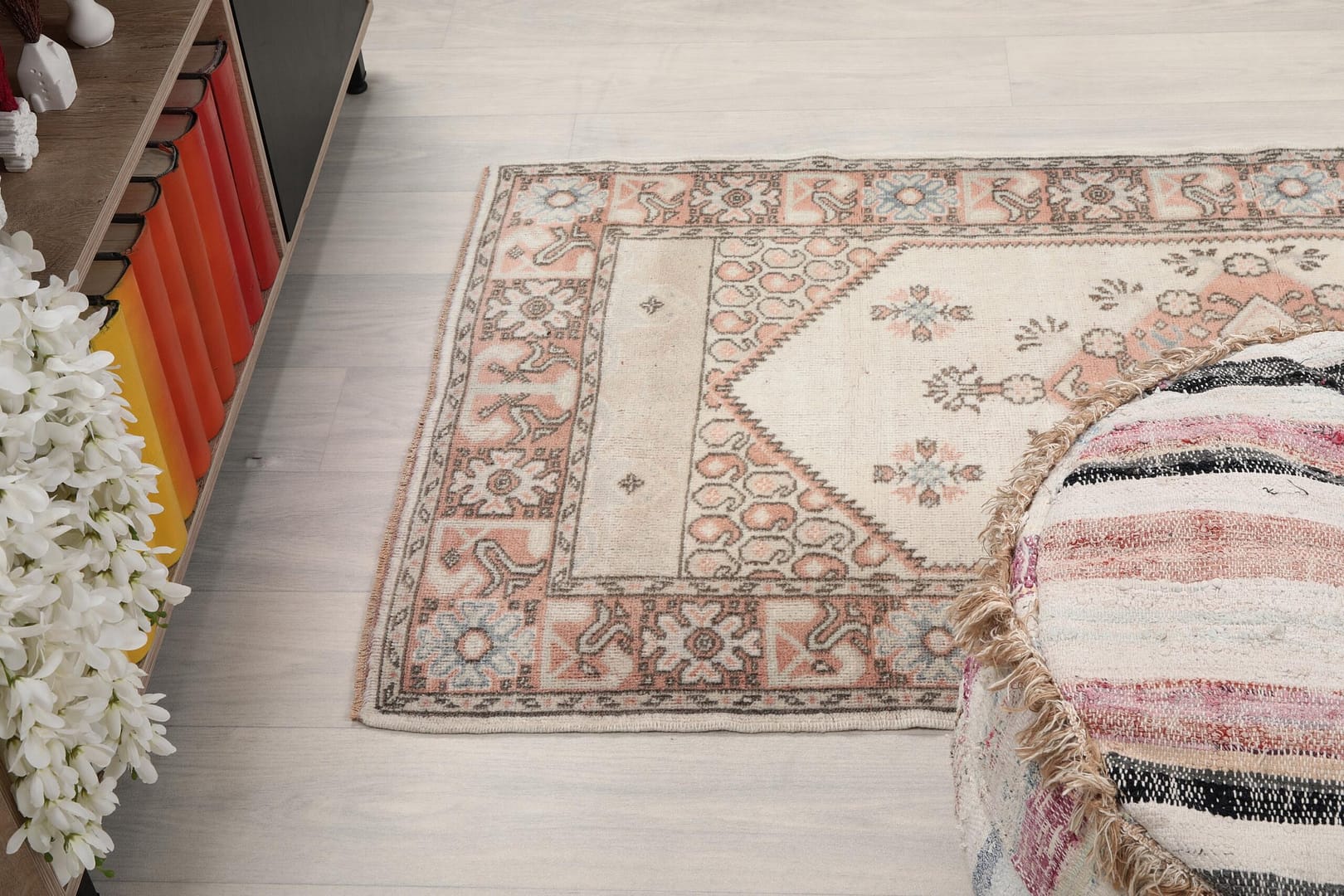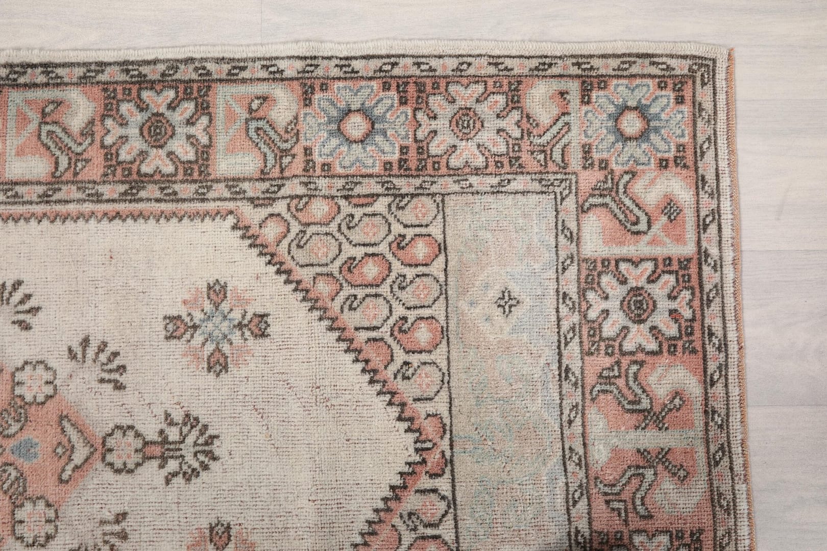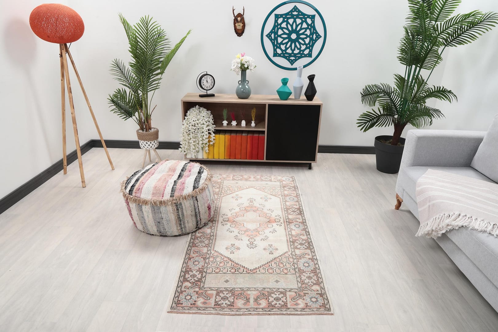 3×6 Beige Floral Turkish Rug, 3×6 Oushak Rug, 3×6 Vintage Small Rug, Corridor Runner, Kitchen Rug, 3×6 Bedroom Rug, Home Decor, Wool Rug