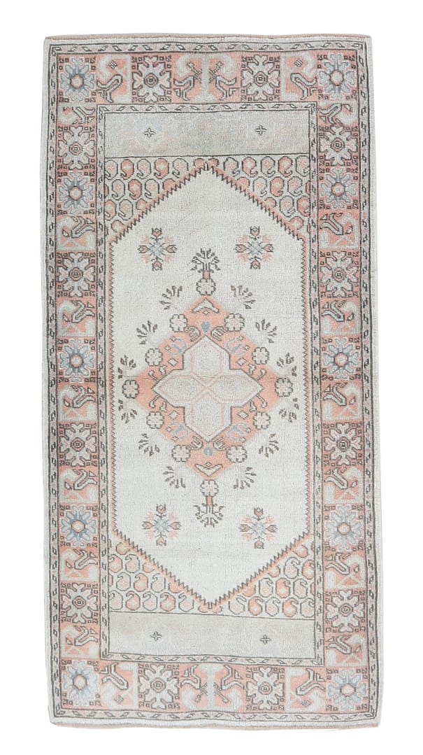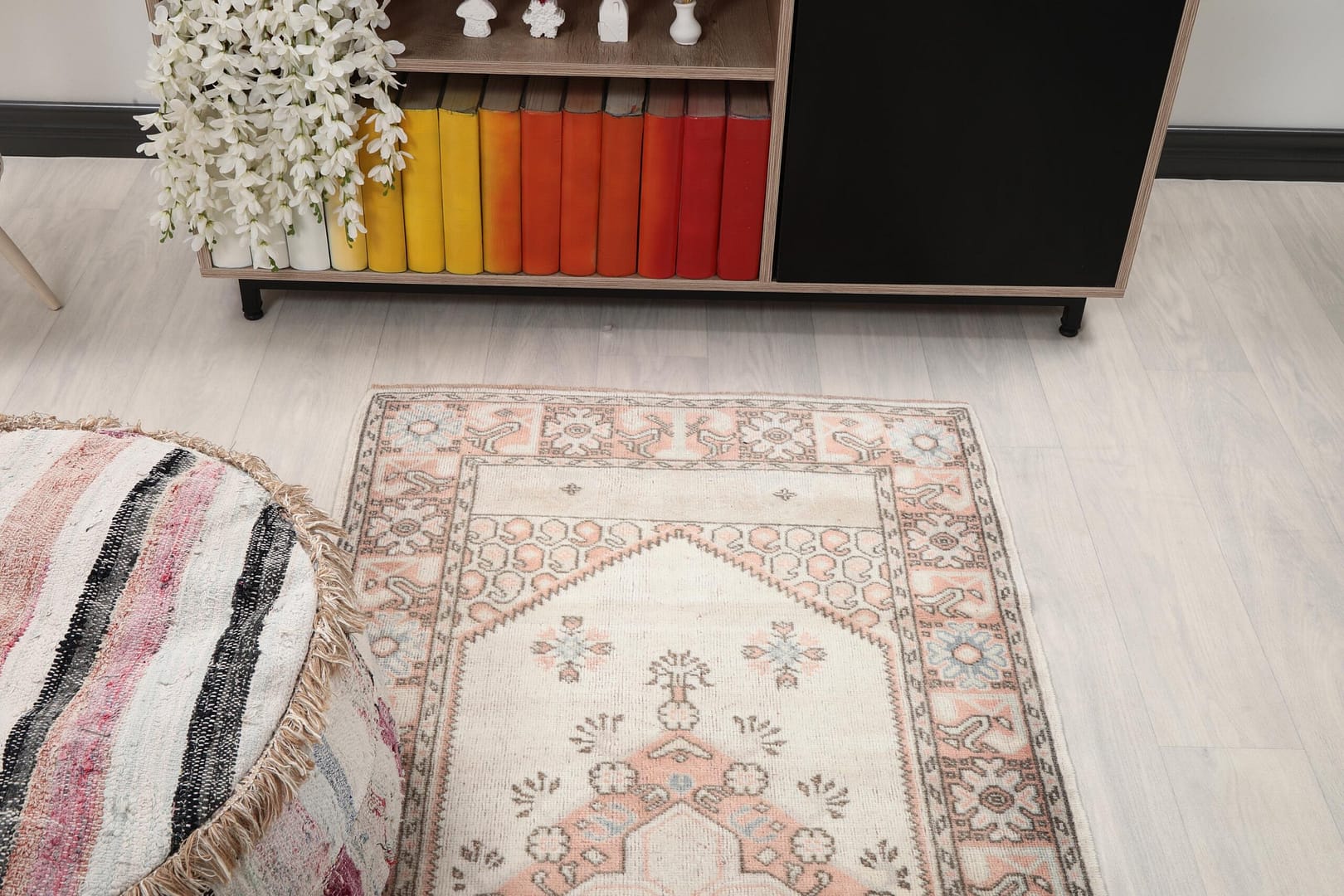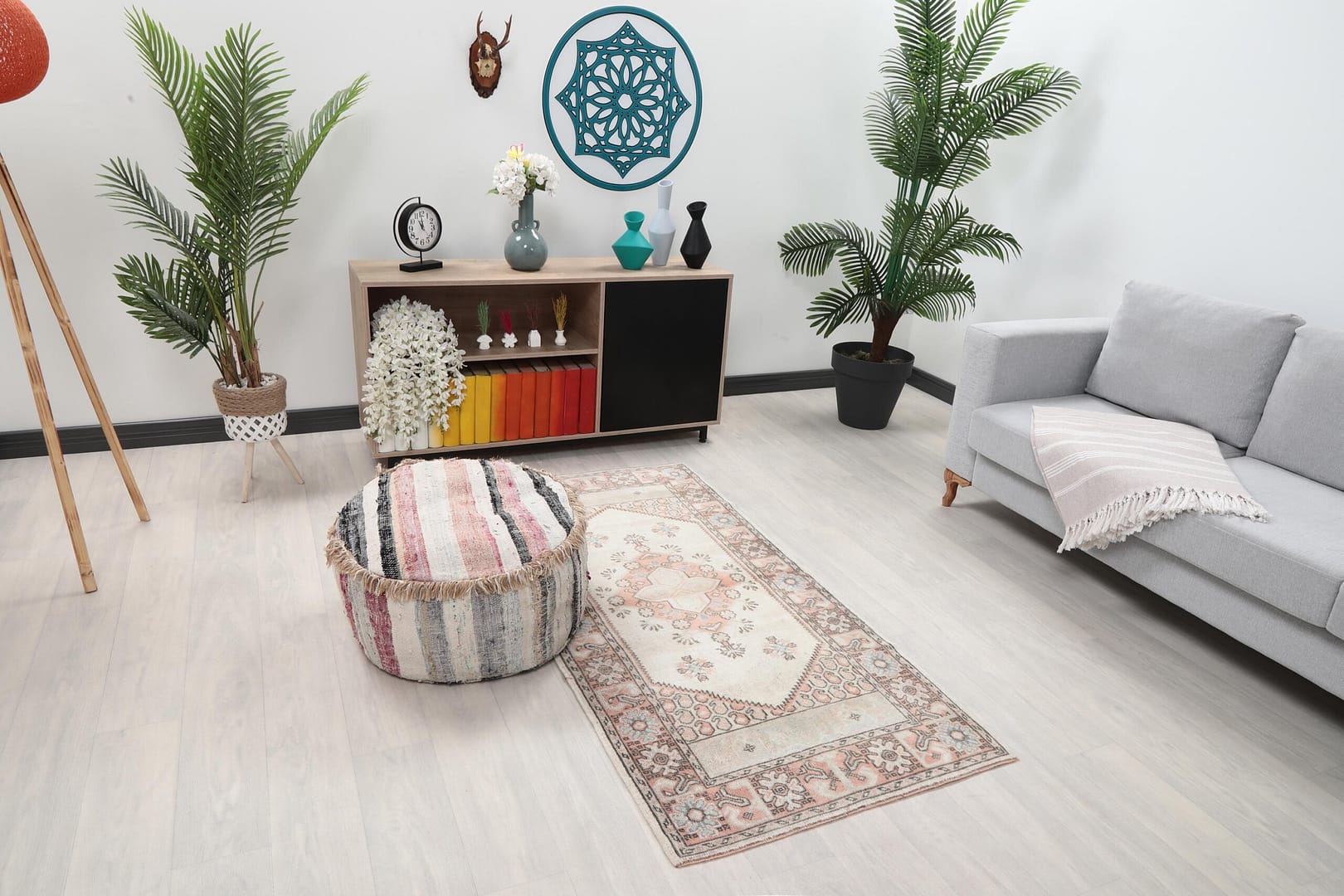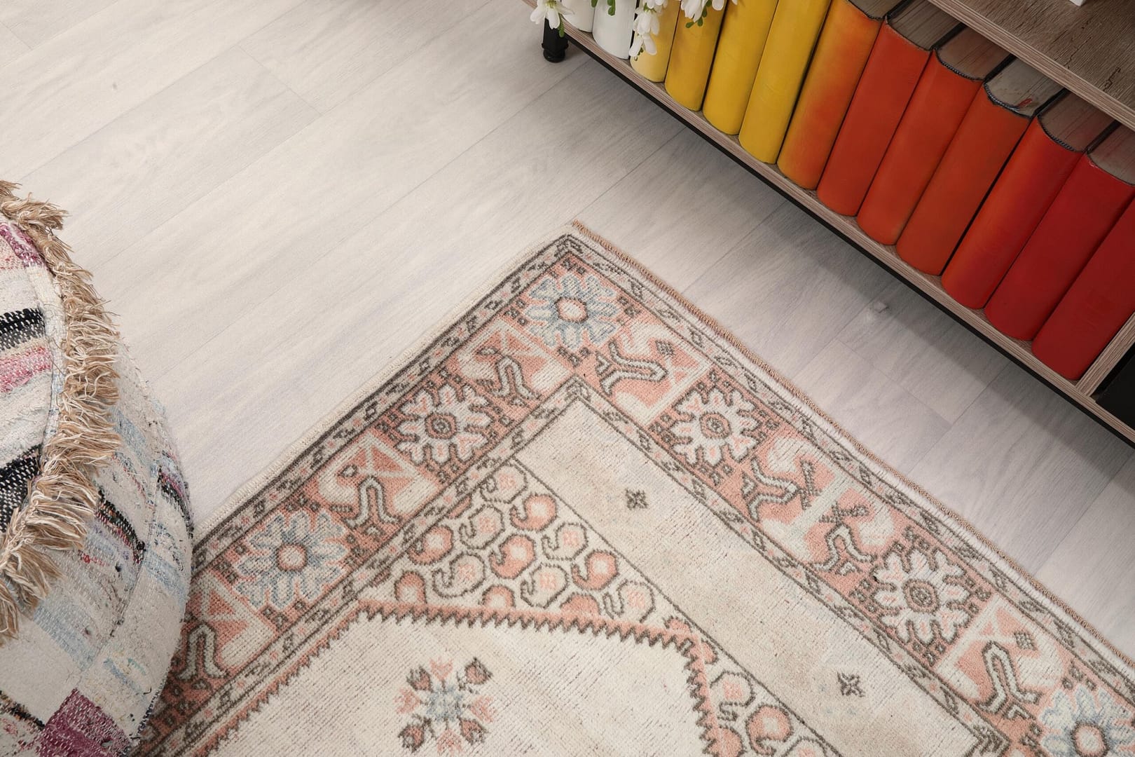3×6 Beige Floral Turkish Rug, 3×6 Oushak Rug, 3×6 Vintage Small Rug, Corridor Runner, Kitchen Rug, 3×6 Bedroom Rug, Home Decor, Wool Rug