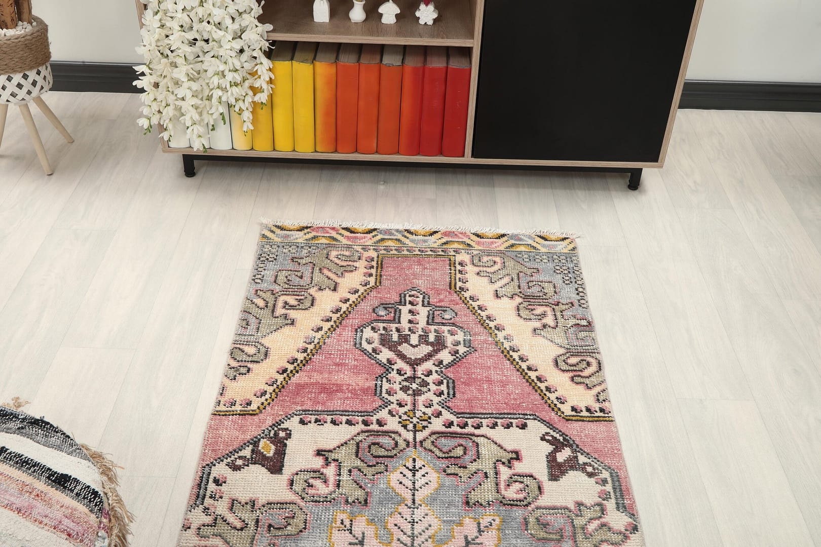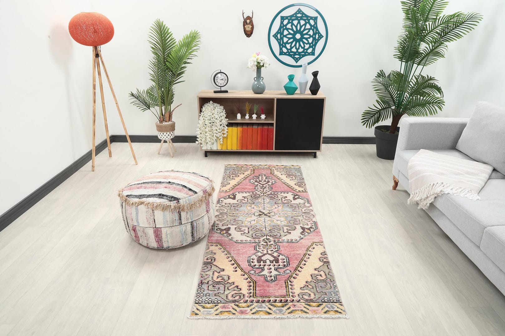 3×7 Pink Handmade Turkish Rug, 3×7 Corridor Colorful Runner, 3×7 Home Decor, 3x7Hallway Runner, 3×7 Bedroom Rugs, Antique Runner, Vintage Rug