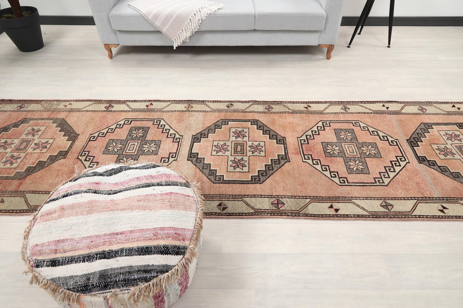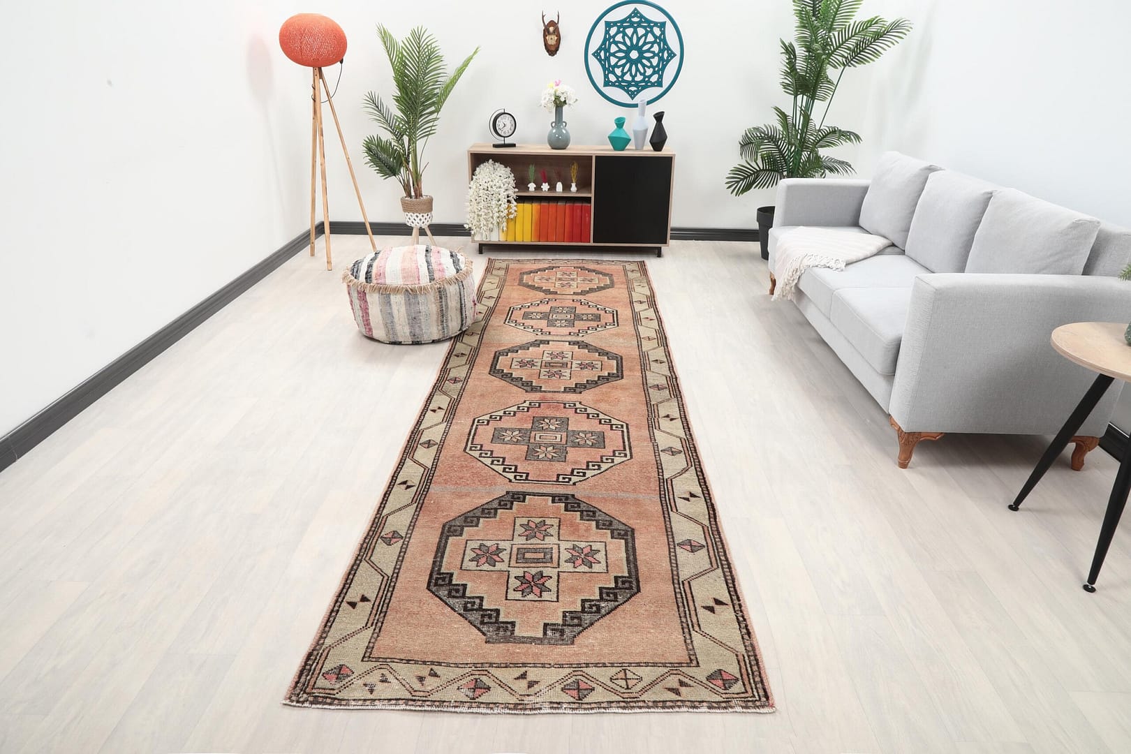 4×13 Red Gray Wool Turkish Runner, 4×13 Muted Oushak Runner, 4×13 Bohemian Runner, Handmade Rug, Vintage Runner, Patterned Runner, Faded Rug