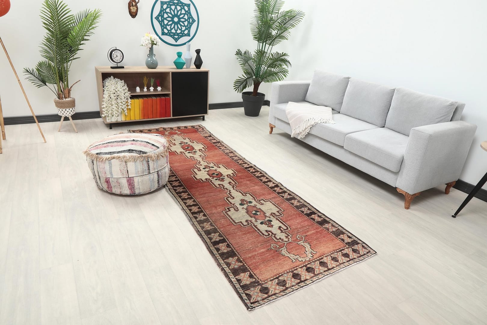 3×10 Red Brown Turkish Runner , 3×10 Oushak Runner, Turkish Bohemian Runner, Handmade Rug,Antique Wool Rug, Kitchen Runner, Hallway Runner
